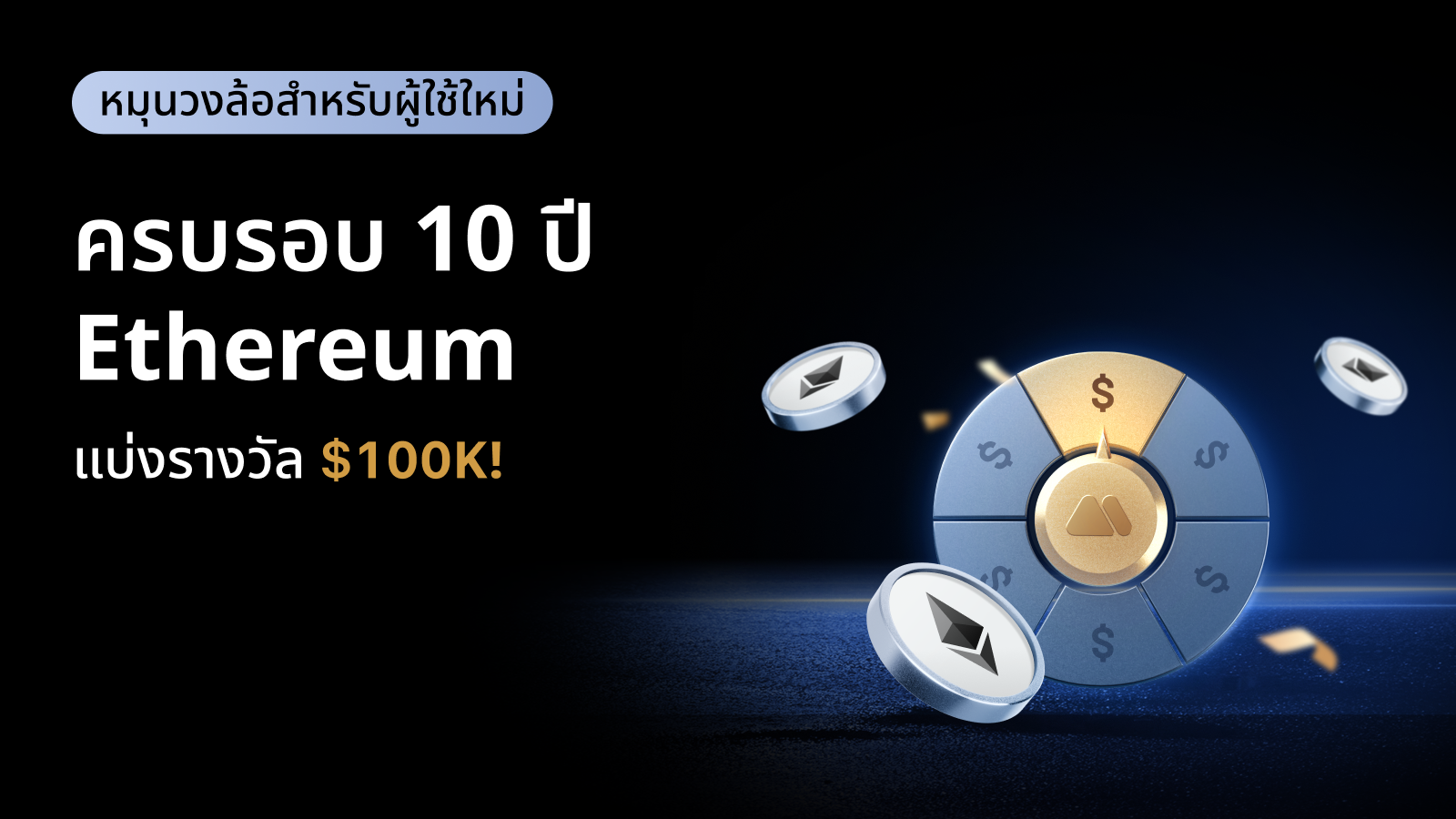 ร่วมสนุกและหมุนวงล้อลุ้นรับรางวัลใหญ่ในกิจกรรมวงล้อนำโชคครบรอบ 10 ปี Ethereum กับพูลรางวัลโทเคนยอดฮิตมูลค่า $100,000 ที่รอให้คุณคว้าไป!