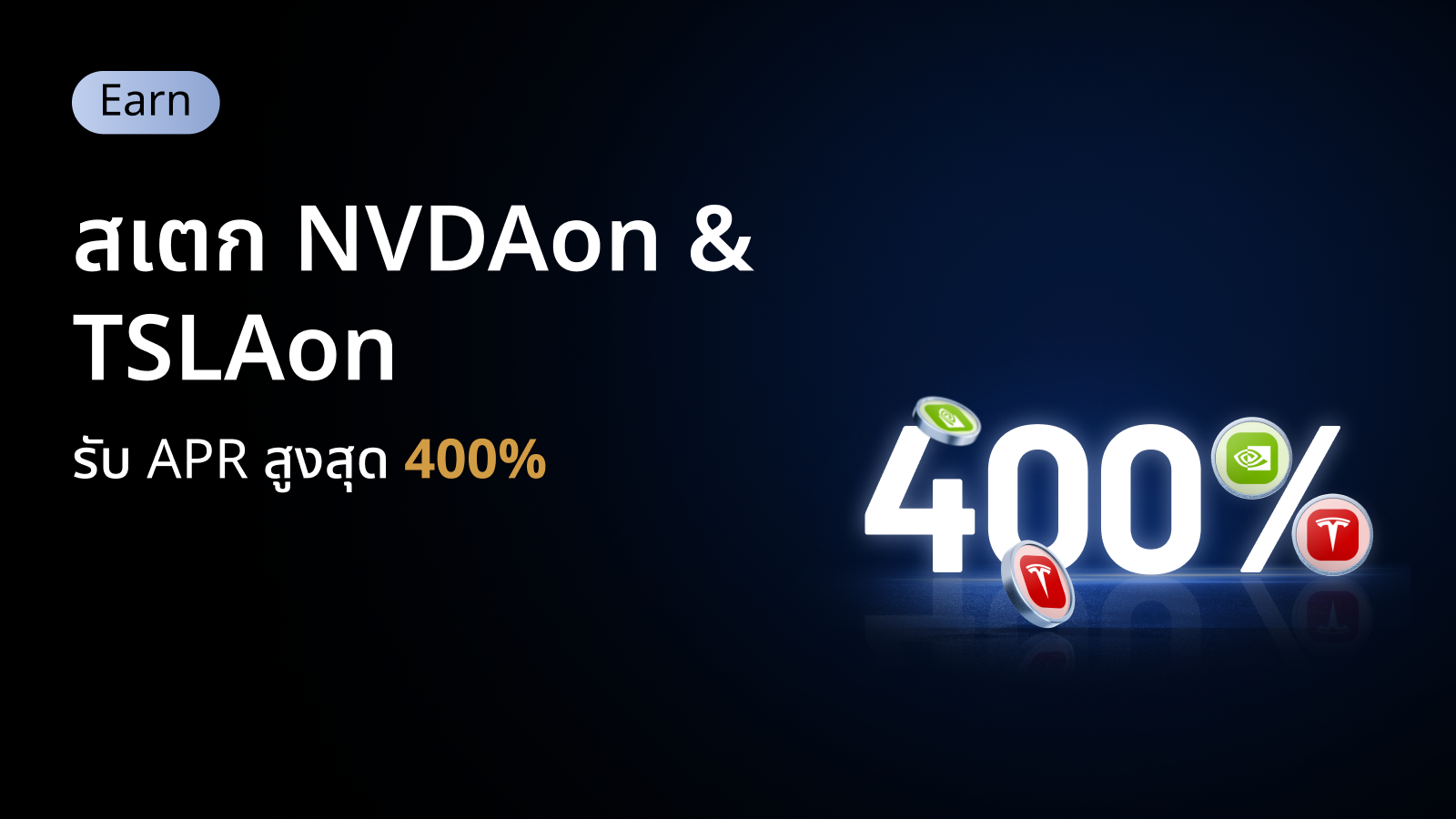 เทศกาลสเตก NVDAon & TSLAon เปิดแล้ว — เฉพาะผู้ใช้ใหม่ และมีเวลาให้เข้าร่วมจำกัดเท่านั้น สเตก NVDAon และ TSLAon ของคุณวันนี้เพื่อรับผลตอบแทนสูงถึง 400% APR อย่าพลาดโอกาสพิเศษนี้!