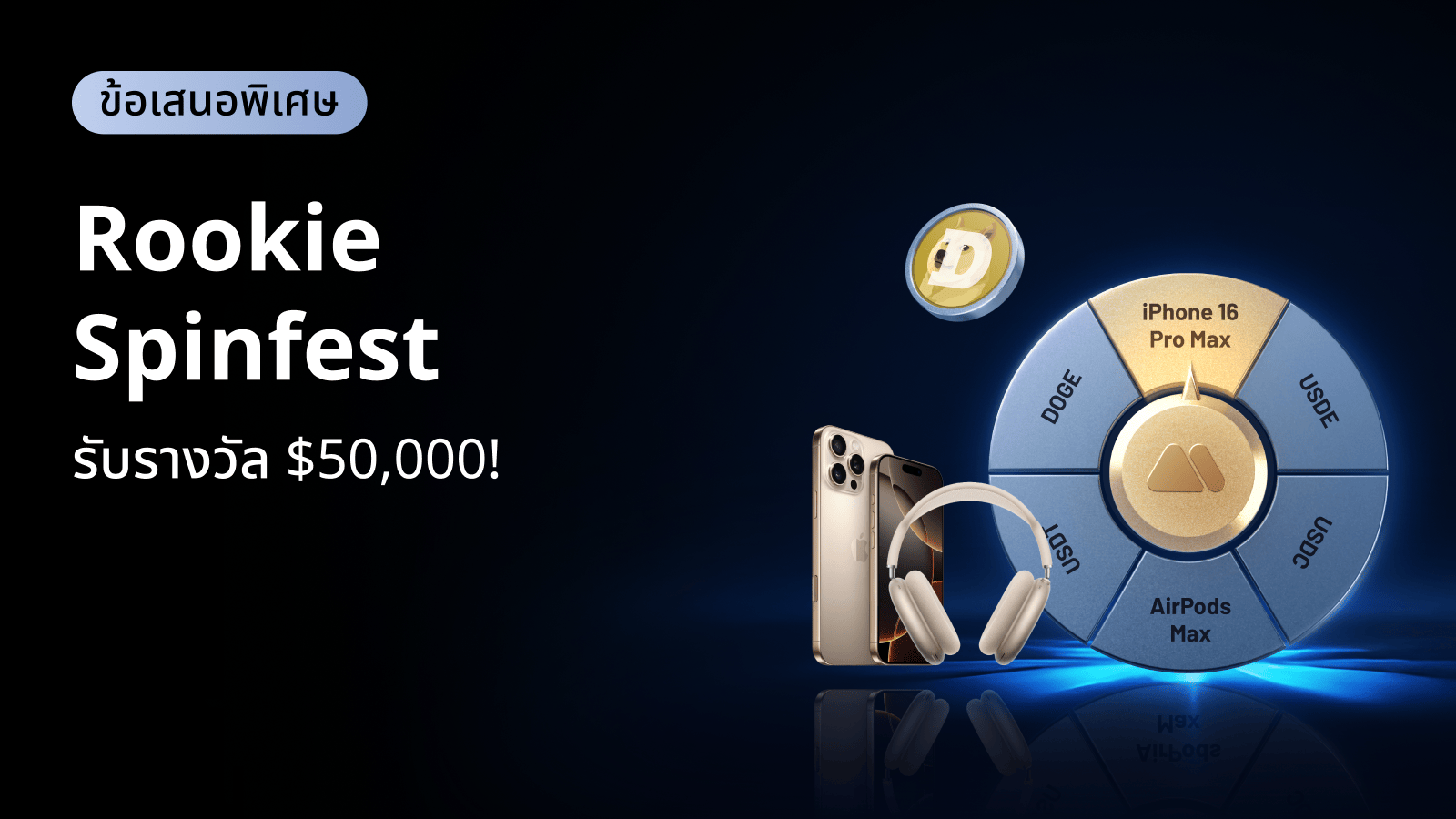 - รางวัลประเภทของรางวัลจริงจะถูกแปลงเป็น USDT และแจกจ่ายตามมูลค่าดังนี้ (iPhone 16 Pro Max: 1,200 USDT; AirPods Max: 550 USDT)