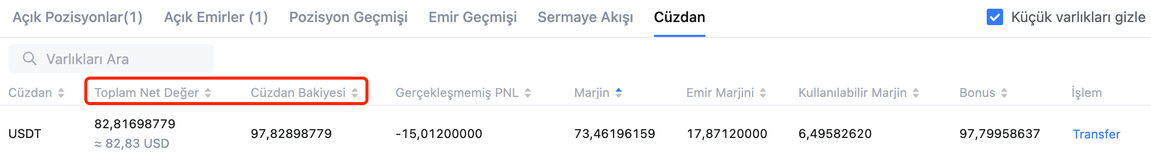 Wallet Balance: Total deposits transferred in – total withdrawals transferred out + realized PNL.