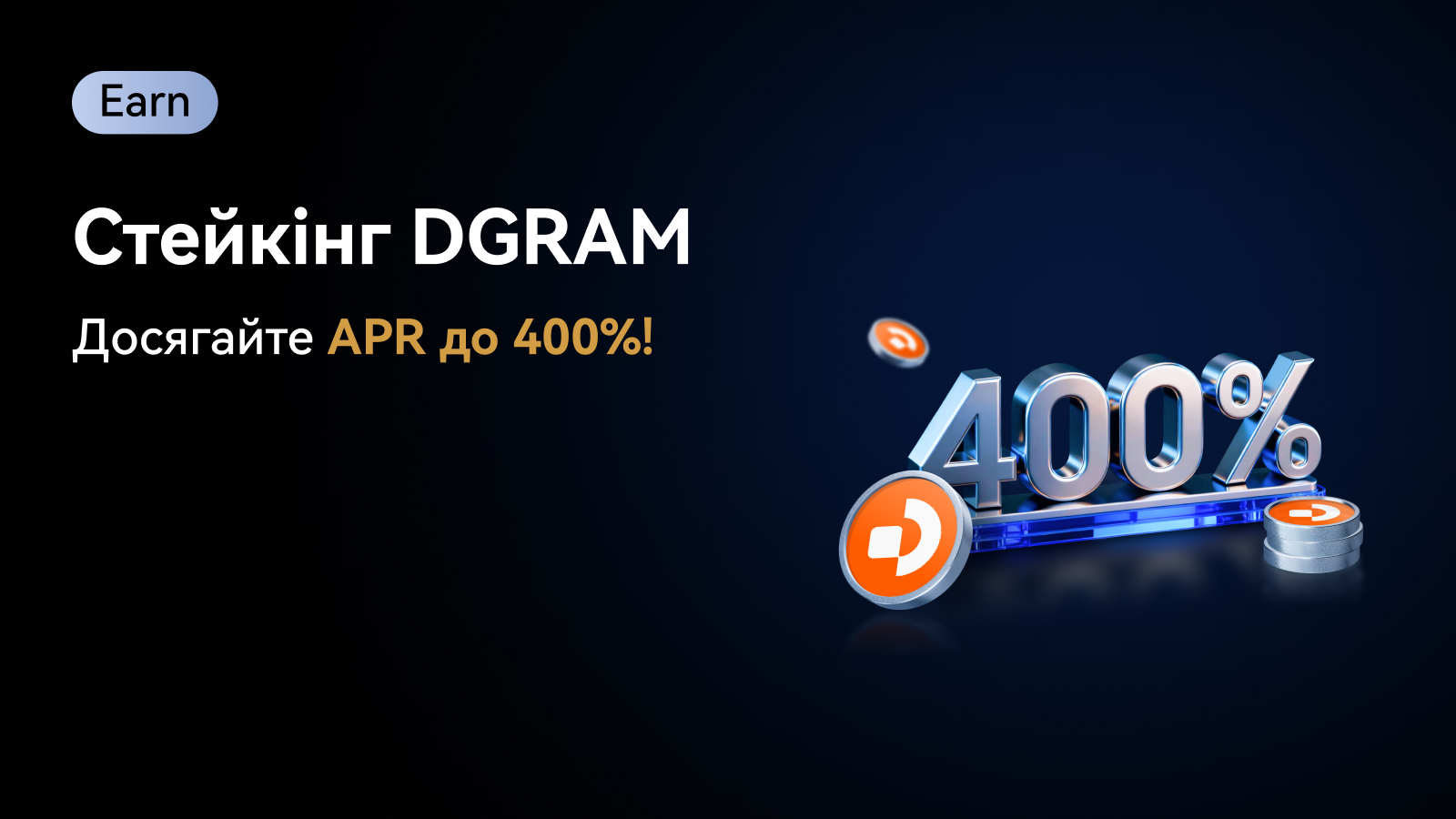 | Для нових користувачів | 3 дні | 400% | 500 DGRAM | 10 000 DGRAM |