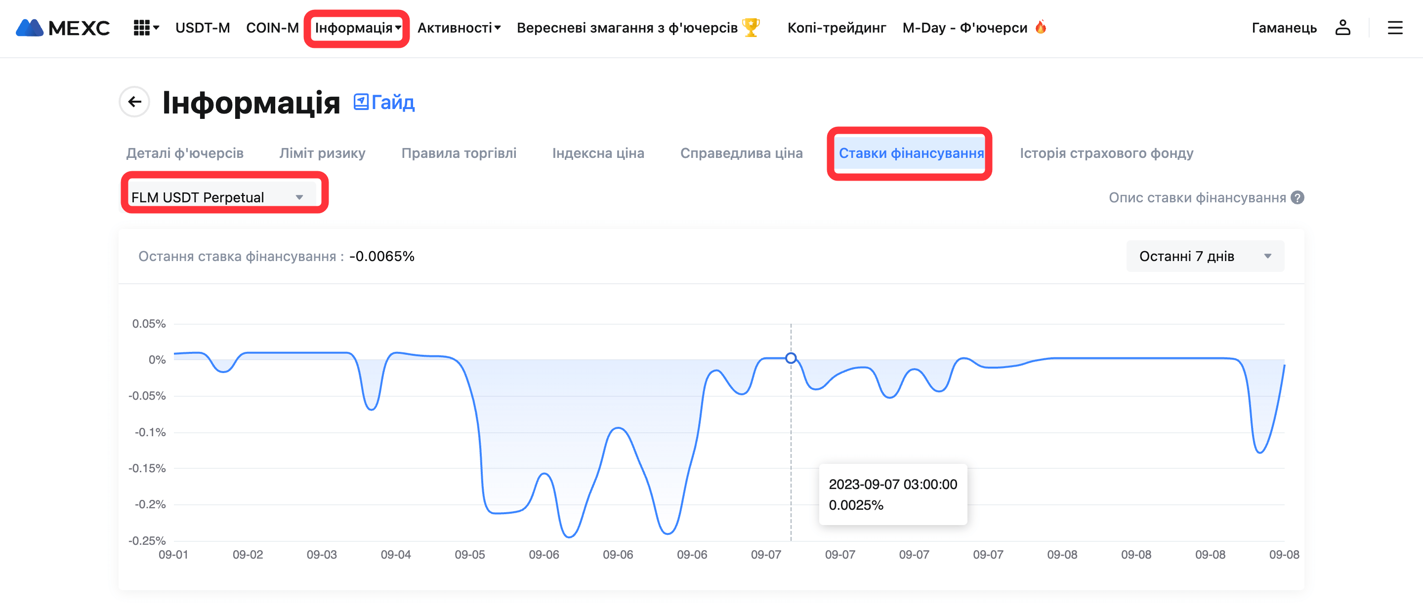 8 вересня 2023 року о 20:20 (за Києвом) на ф'ючерсах MEXC було змінено частоту розрахунку ставки фінансування ф'ючерсів FLM USDT-M: 1 раз на 8 годин. Детальна інформація наведена нижче: