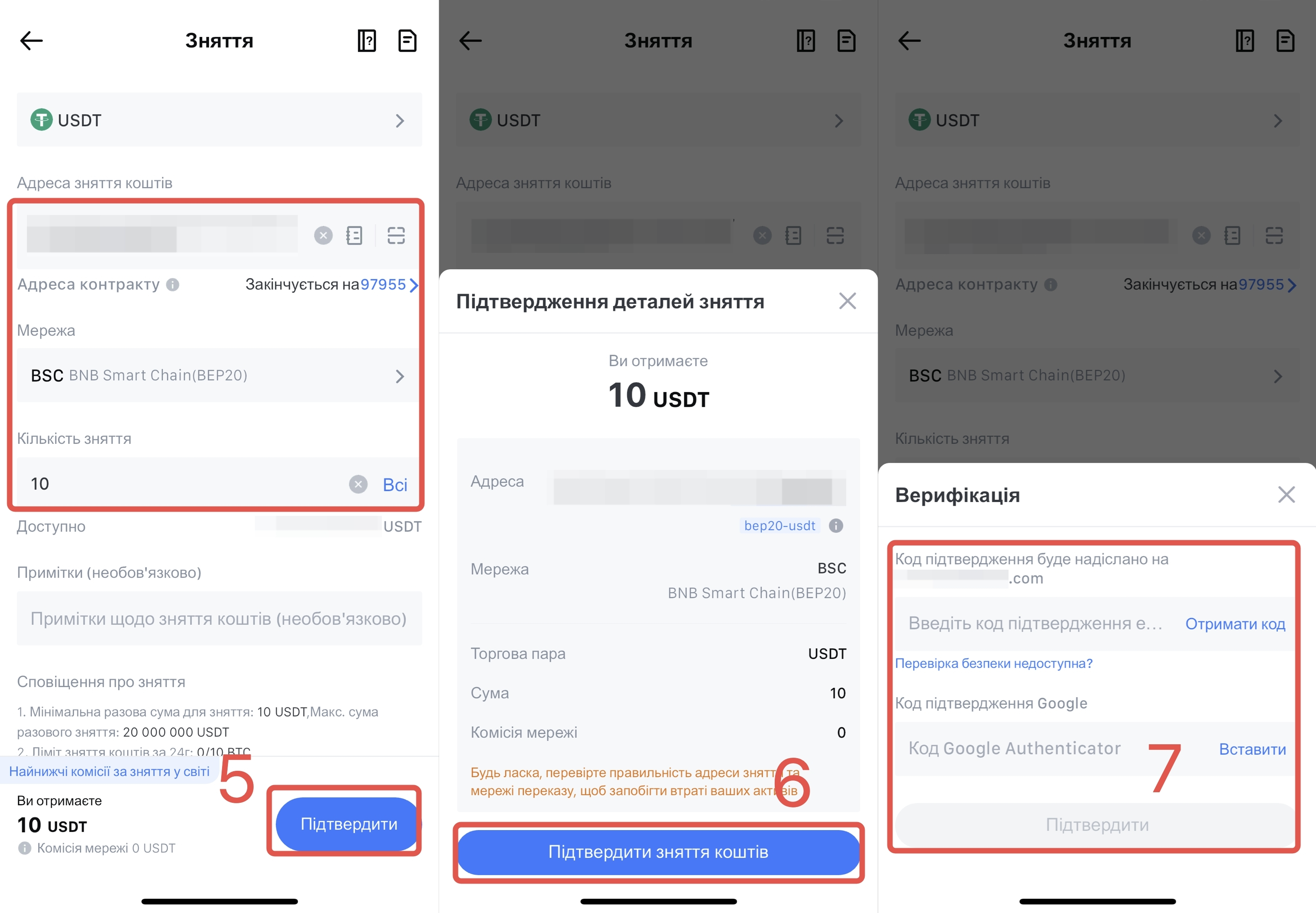4. Комісія за зняття коштів варіюється для кожної криптовалюти, і її можна переглянути на сторінці зняття коштів після вибору криптовалюти.
