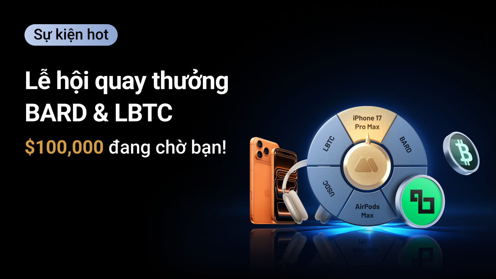Bước 3: Tham gia vòng quay để có cơ hội nhận iPhone 17 Pro Max, AirPods Max, BARD, LBTC và nhiều phần thưởng bất ngờ khác.