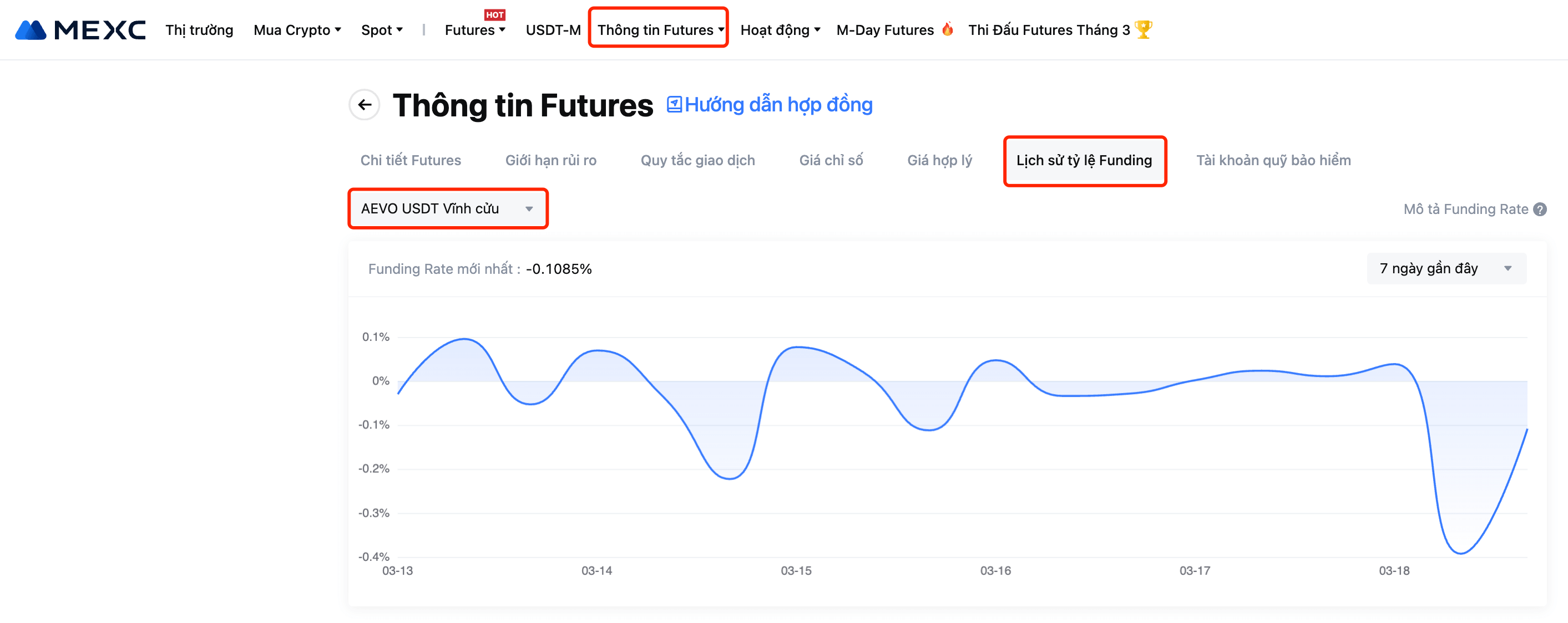 Để biết chi tiết tỷ lệ Funding mới nhất, vui lòng tham khảo Thông tin Futures - Lịch sử tỷ lệ Funding.