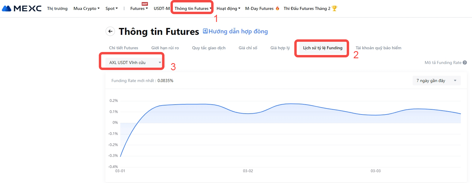 Để biết chi tiết tỷ lệ Funding mới nhất, vui lòng tham khảo Thông tin Futures - Lịch sử tỷ lệ Funding.