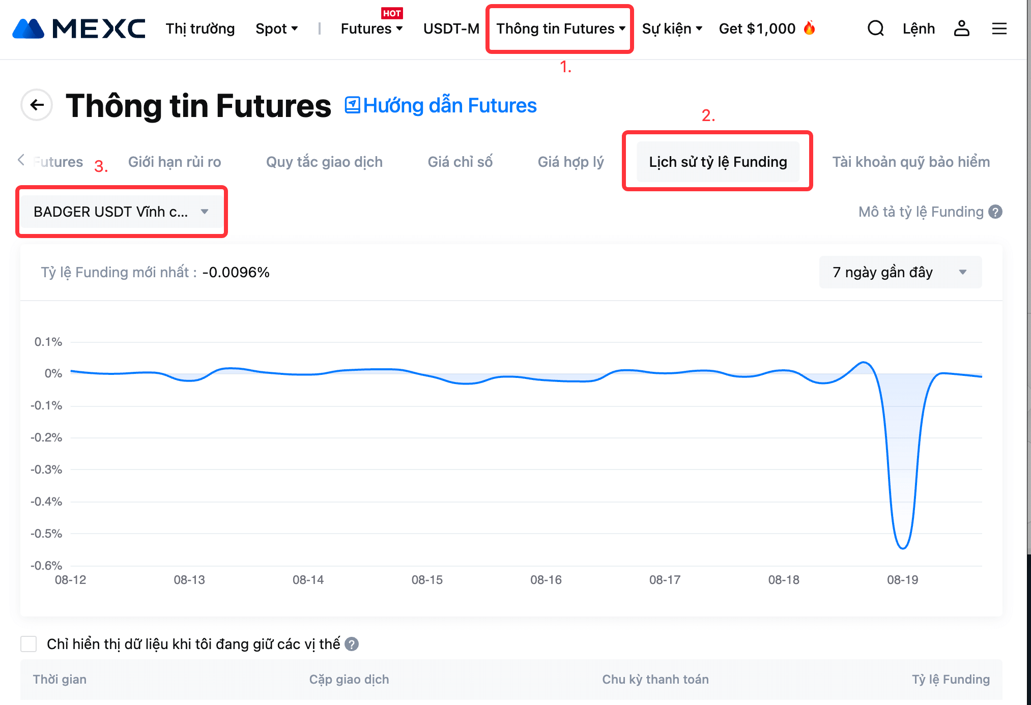 Thời gian (Giờ VN) | Tỷ lệ Funding tối đa của BADGER USDT Futures |