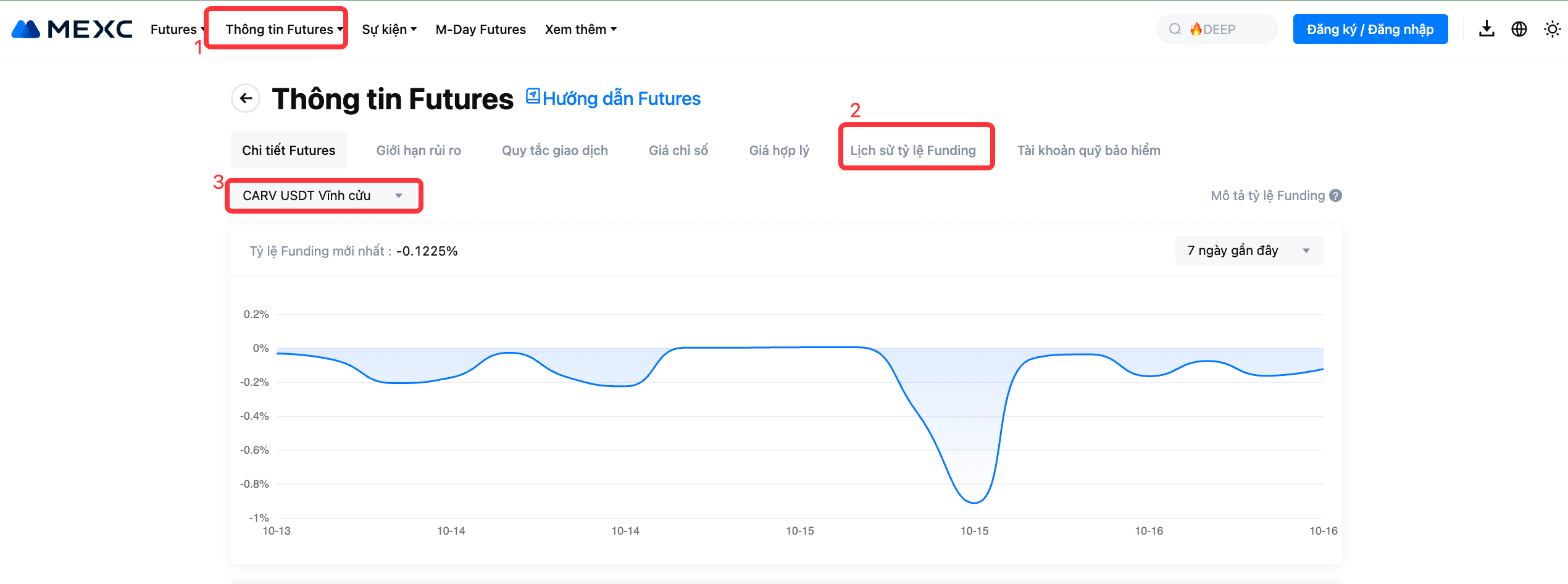 Để biết chi tiết tỷ lệ Funding mới nhất, vui lòng tham khảo Thông tin Futures - Lịch sử tỷ lệ Funding.