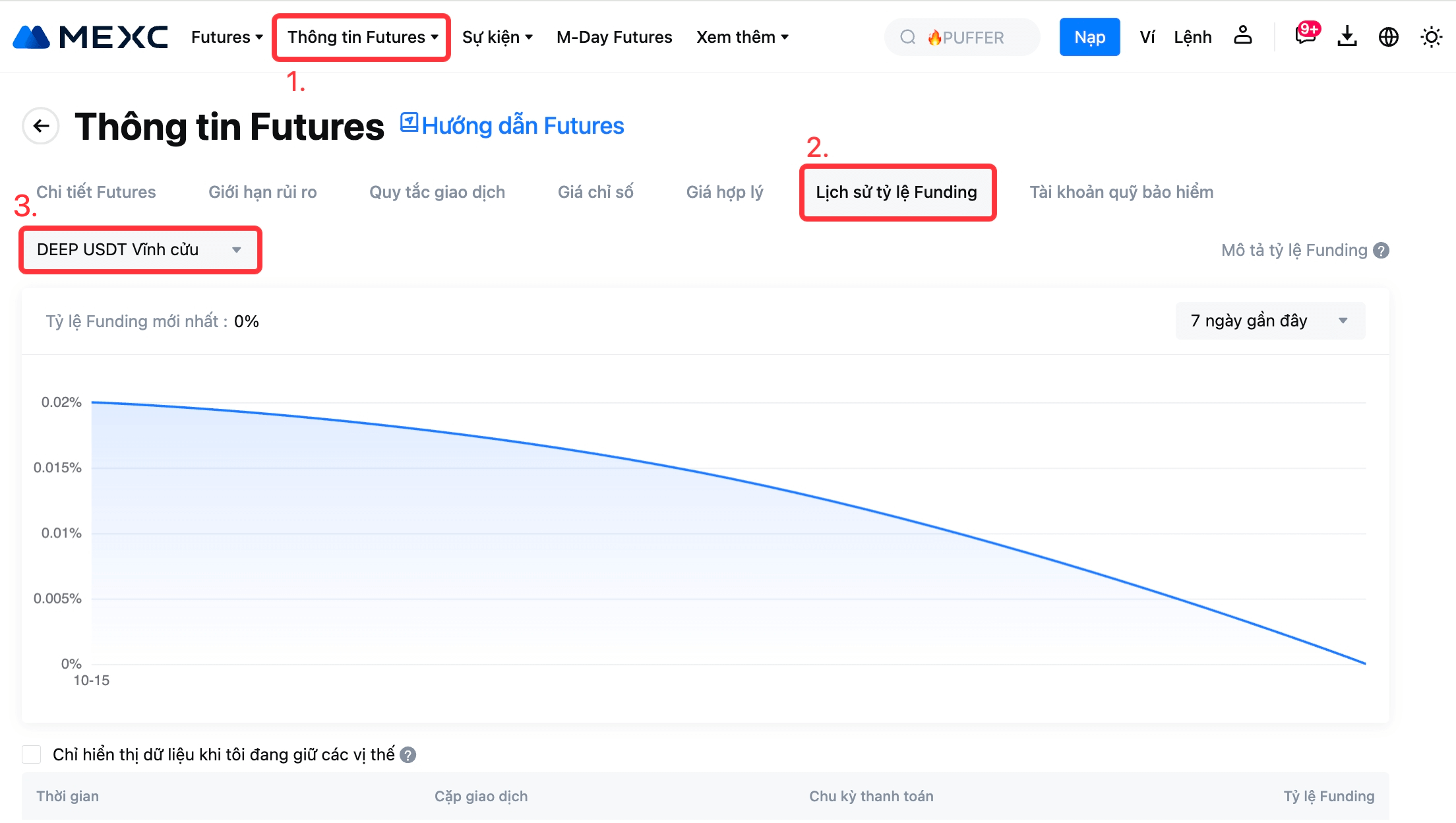 Để biết chi tiết tỷ lệ Funding mới nhất, vui lòng tham khảo Thông tin Futures - Lịch sử tỷ lệ Funding.