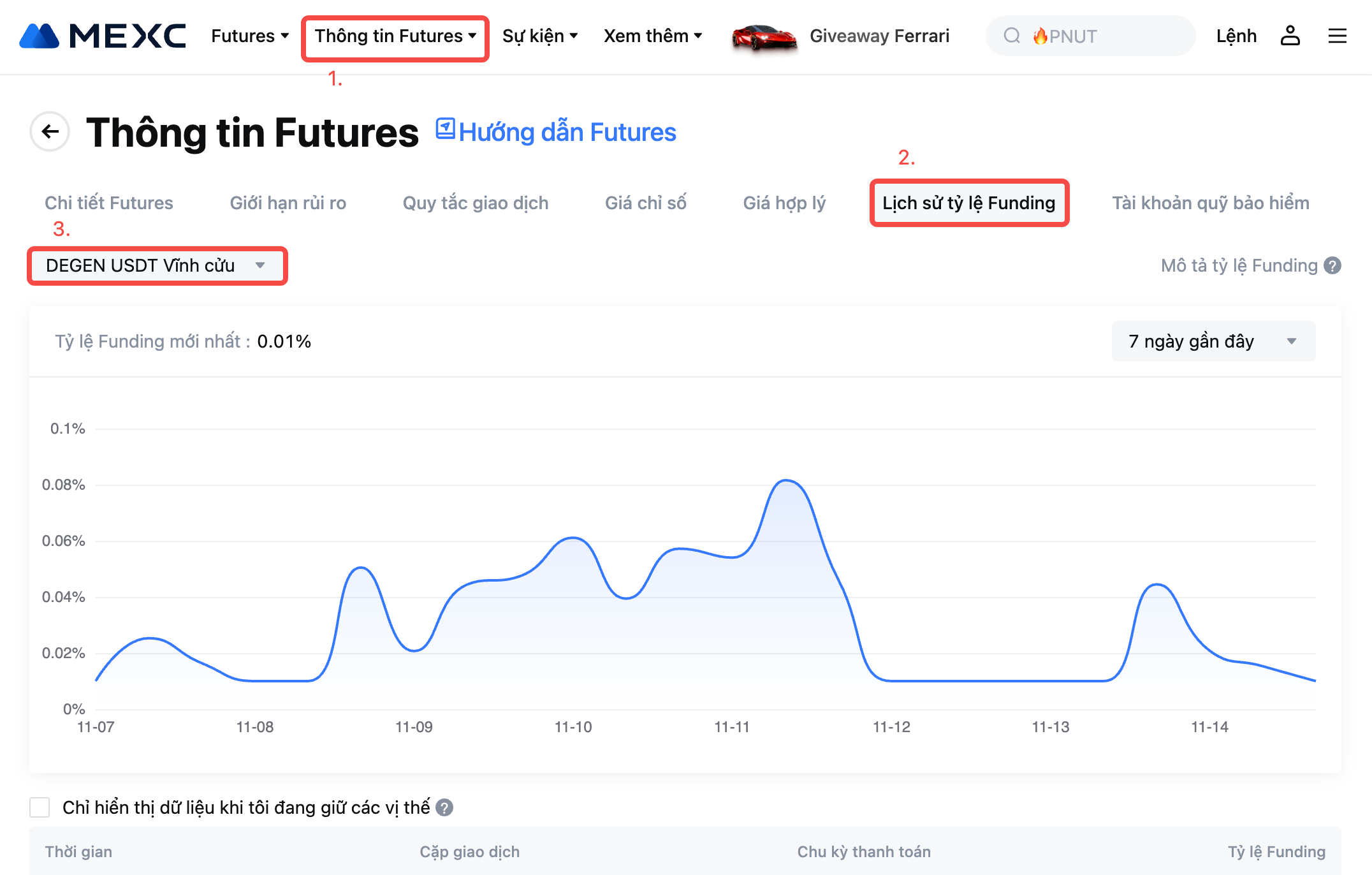 Để biết chi tiết tỷ lệ Funding mới nhất, vui lòng tham khảo Thông tin Futures - Lịch sử tỷ lệ Funding.