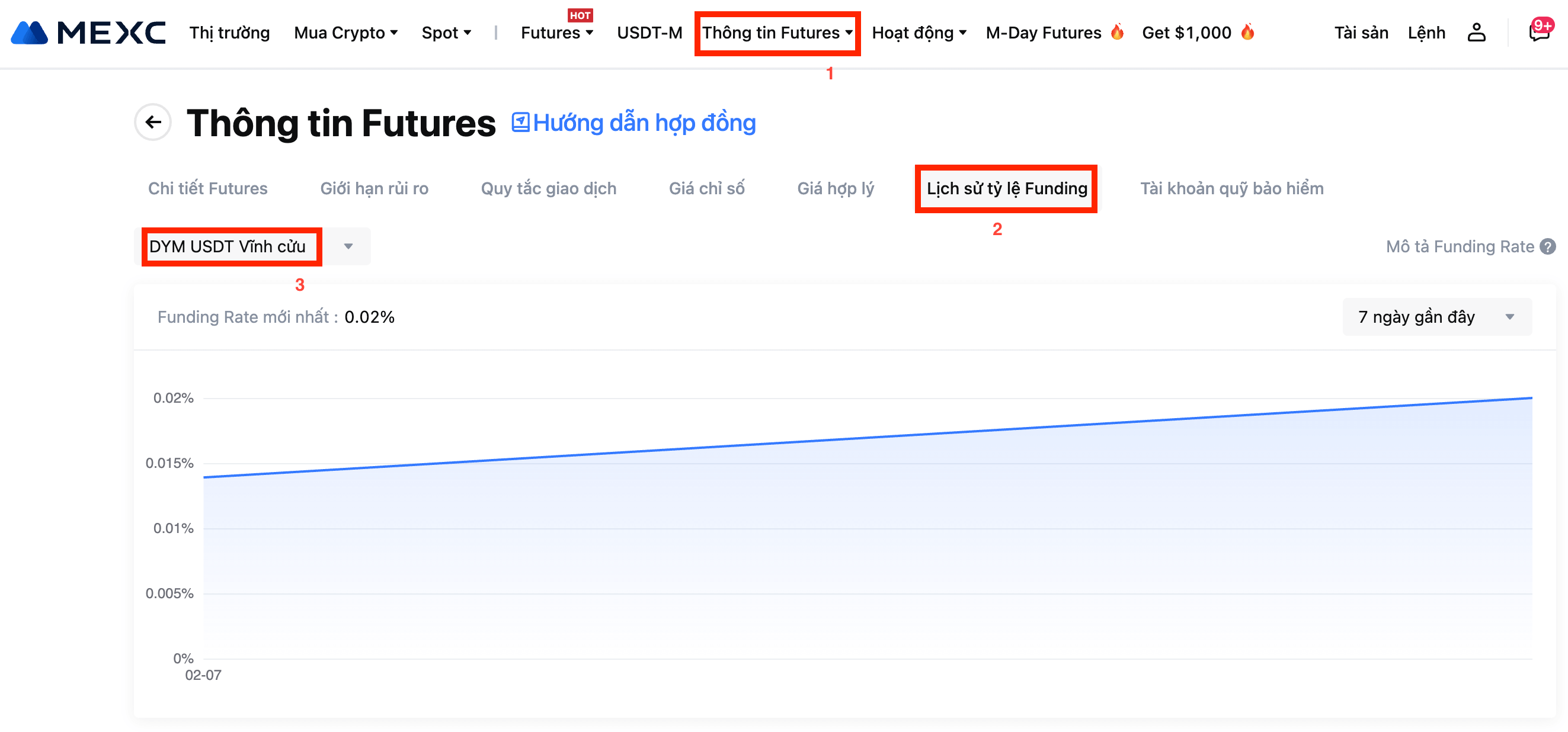 Để biết chi tiết tỷ lệ Funding mới nhất, vui lòng tham khảo Thông tin Futures - Lịch sử tỷ lệ Funding.