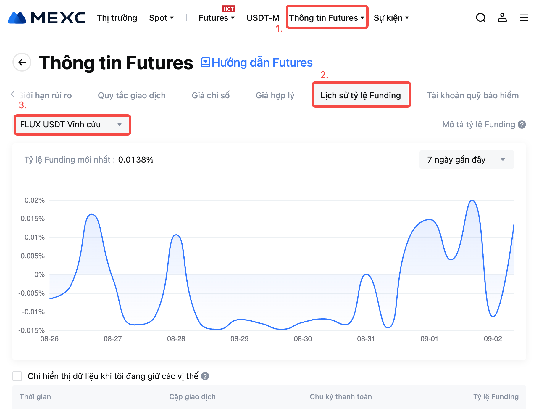 Để biết chi tiết tỷ lệ Funding mới nhất, vui lòng tham khảo Thông tin Futures - Lịch sử tỷ lệ Funding.