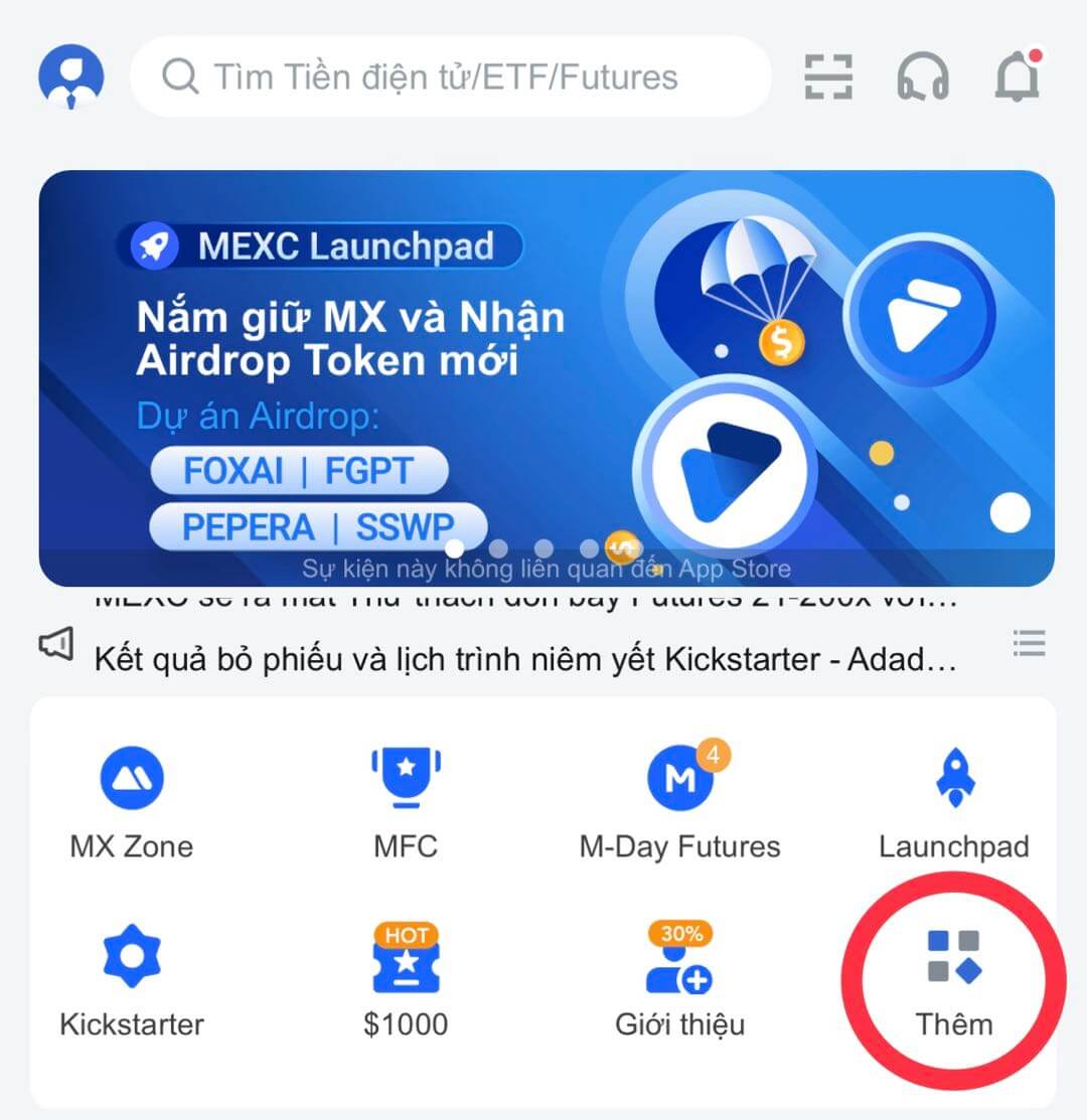 Truy cập Copy Trade:APP> Thêm> Giao dịch> Copy Trade