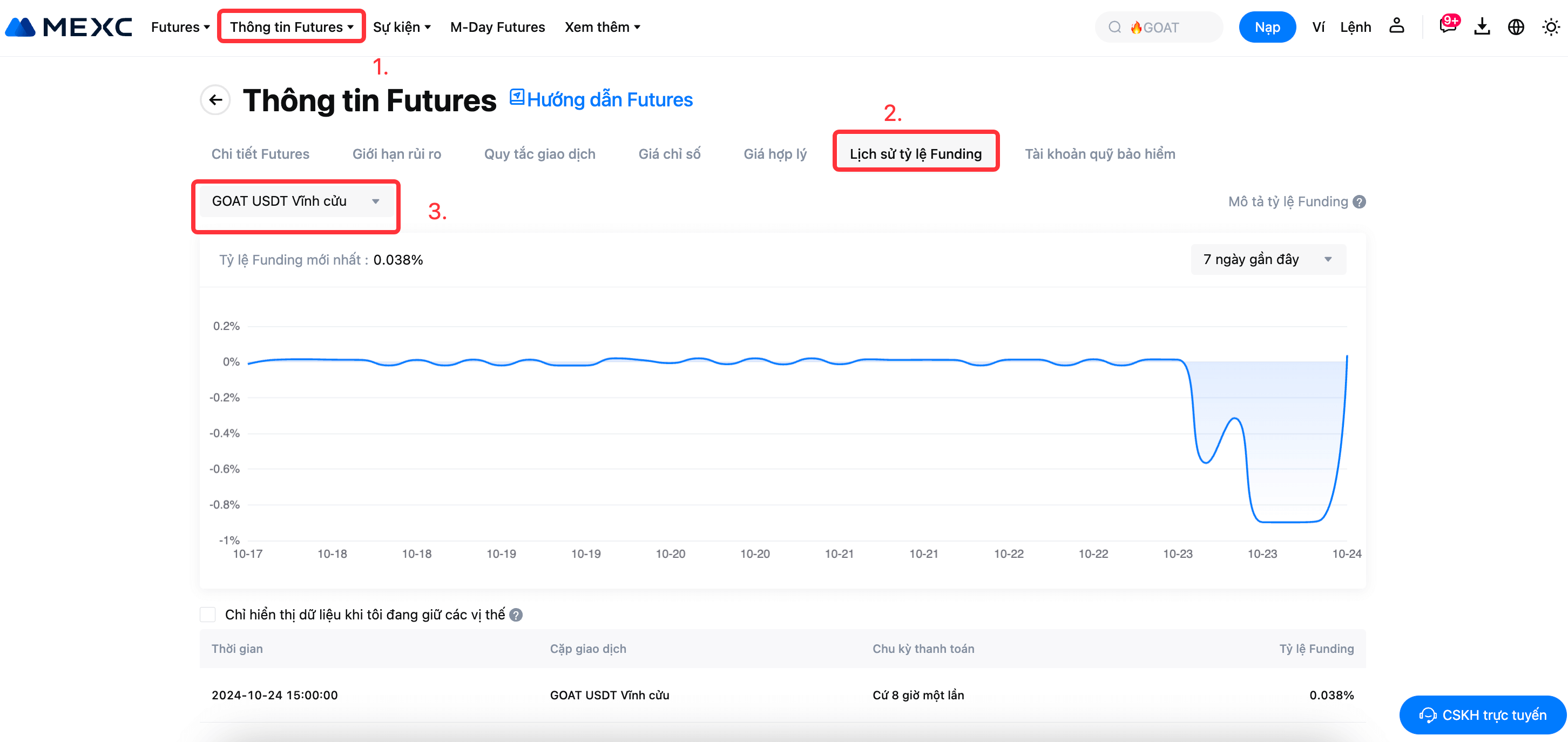 Thời gian (Giờ VN) | Tỷ lệ Funding tối đa của GOAT USDT Futures |