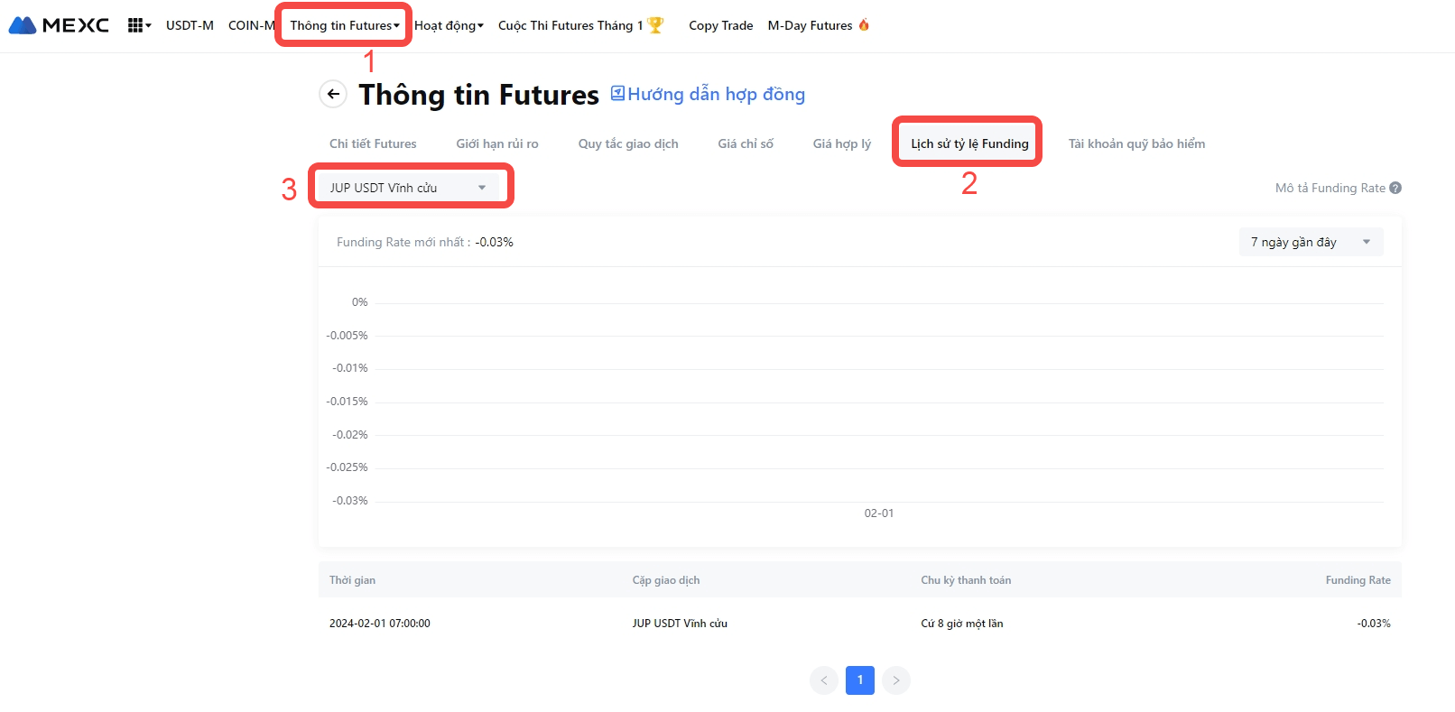 Để biết chi tiết tỷ lệ Funding mới nhất, vui lòng tham khảo Thông tin Futures - Lịch sử tỷ lệ Funding.