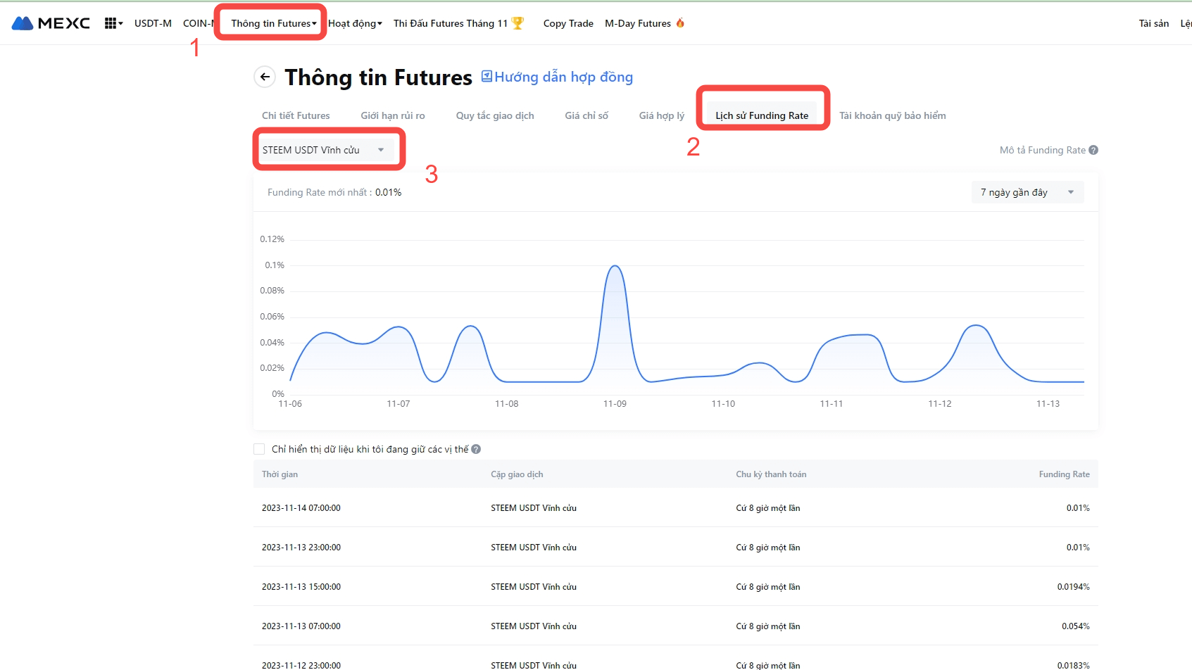 Thời gian (Giờ VN) | Funding Rate tối đa của STEEMUSDT Futures |