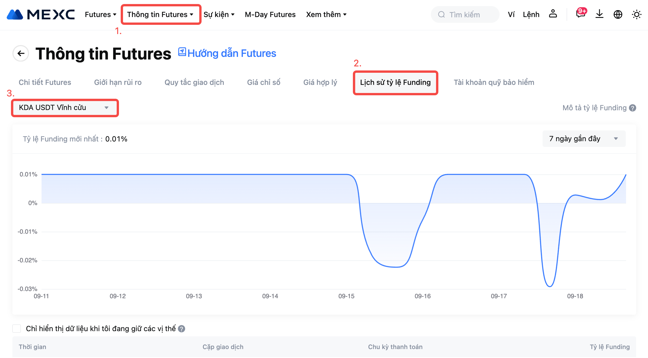 Để biết chi tiết tỷ lệ Funding mới nhất, vui lòng tham khảo Thông tin Futures - Lịch sử tỷ lệ Funding.