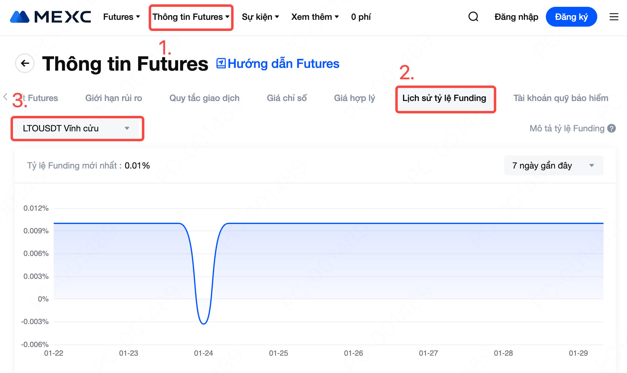 Để biết chi tiết tỷ lệ Funding mới nhất, vui lòng tham khảo Thông tin Futures - Lịch sử tỷ lệ Funding.