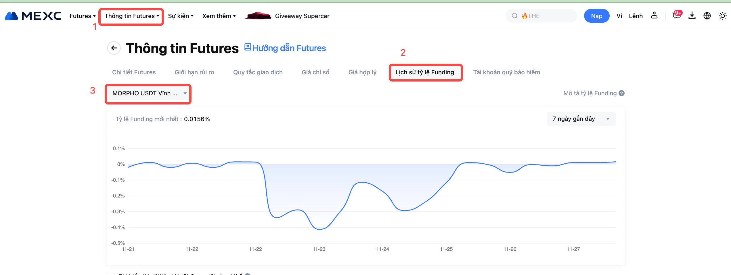 Để biết chi tiết tỷ lệ Funding mới nhất, vui lòng tham khảo Thông tin Futures - Lịch sử tỷ lệ Funding.