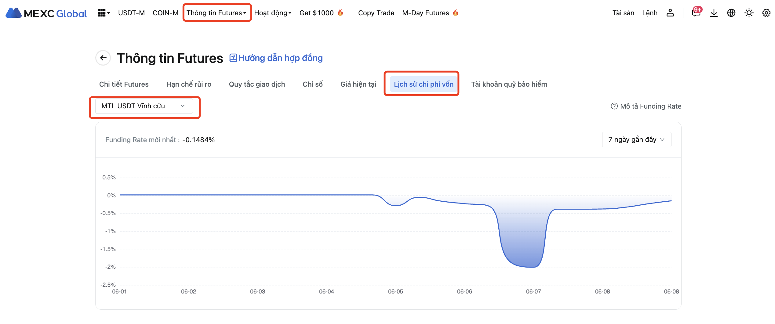 Để biết chi tiết về Funding Rate mới nhất, vui lòng tham khảo Thông tin Futures - Lịch sử Funding Rate.