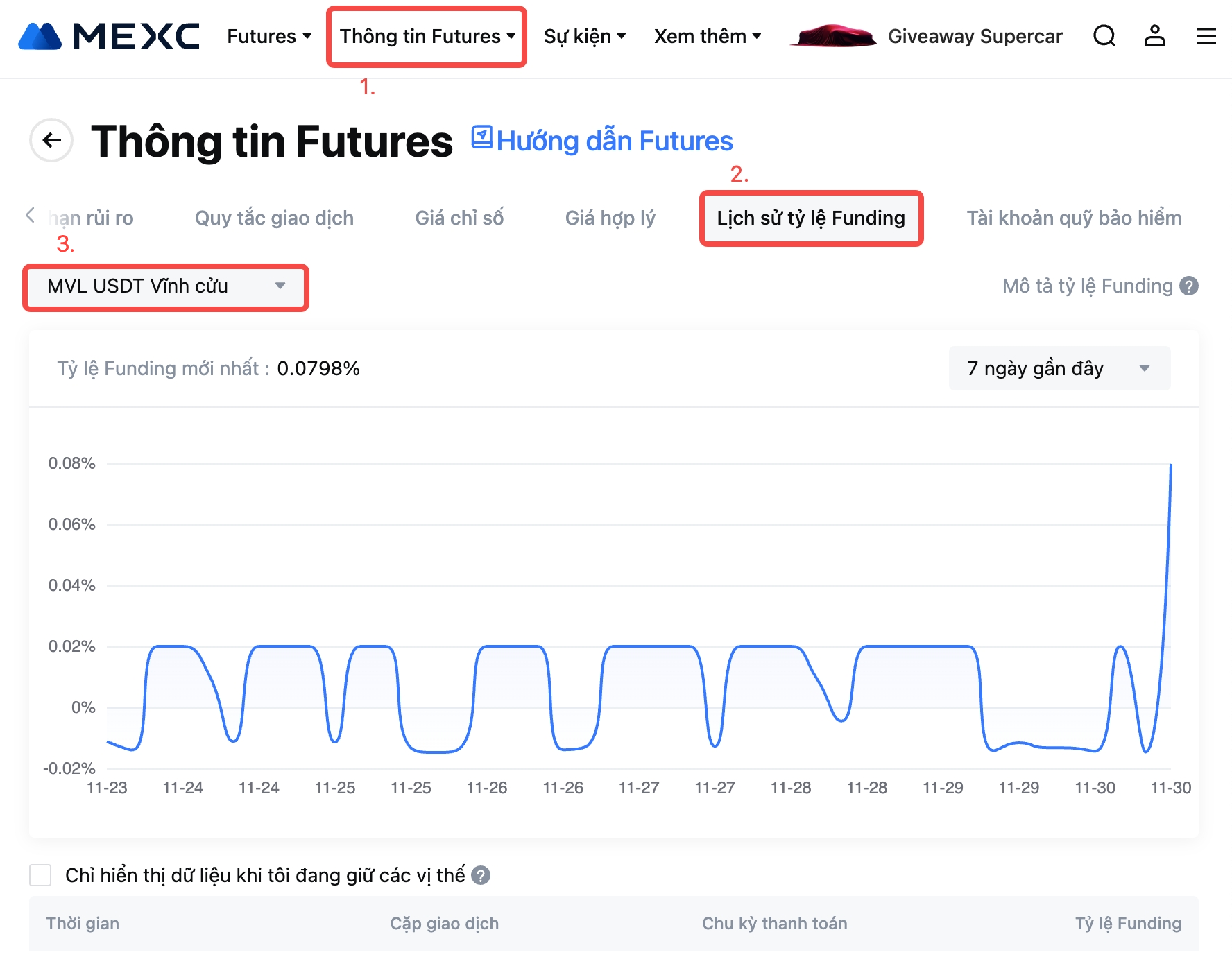 Thời gian (Giờ VN) | Tỷ lệ Funding tối đa của MVL USDT Futures |