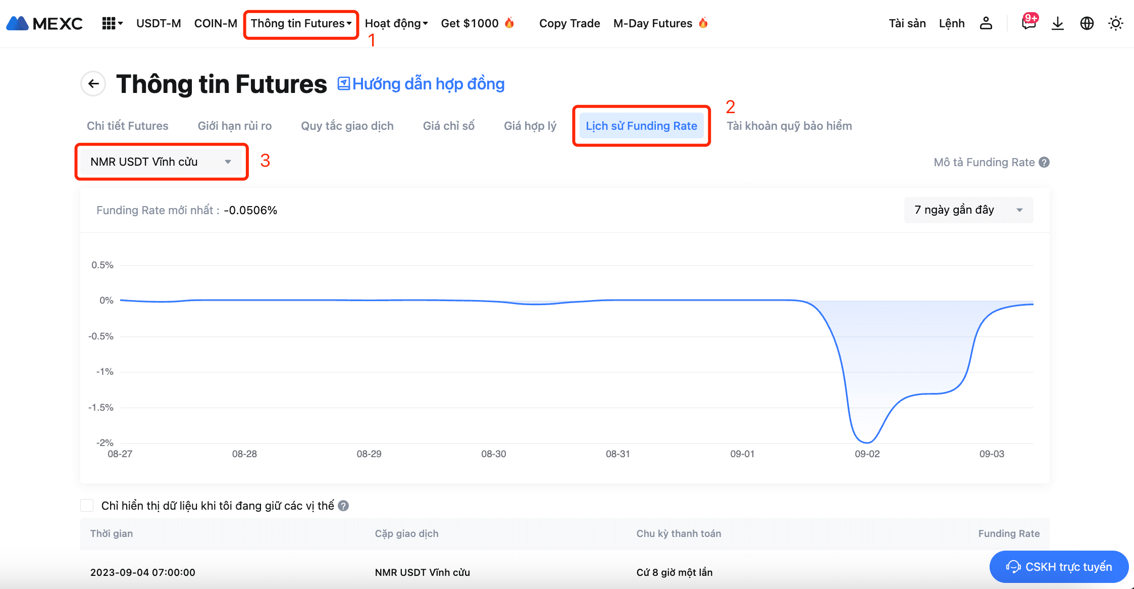 Thời gian (Giờ VN) | Funding Rate tối đa của NMRUSDT Futures |
