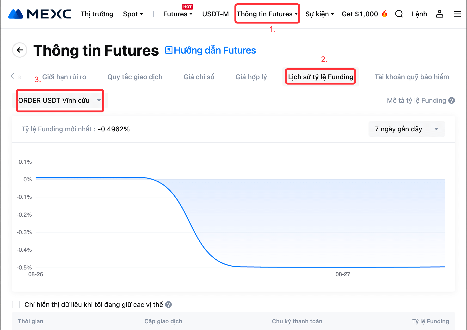 Để biết chi tiết tỷ lệ Funding mới nhất, vui lòng tham khảo Thông tin Futures - Lịch sử tỷ lệ Funding.