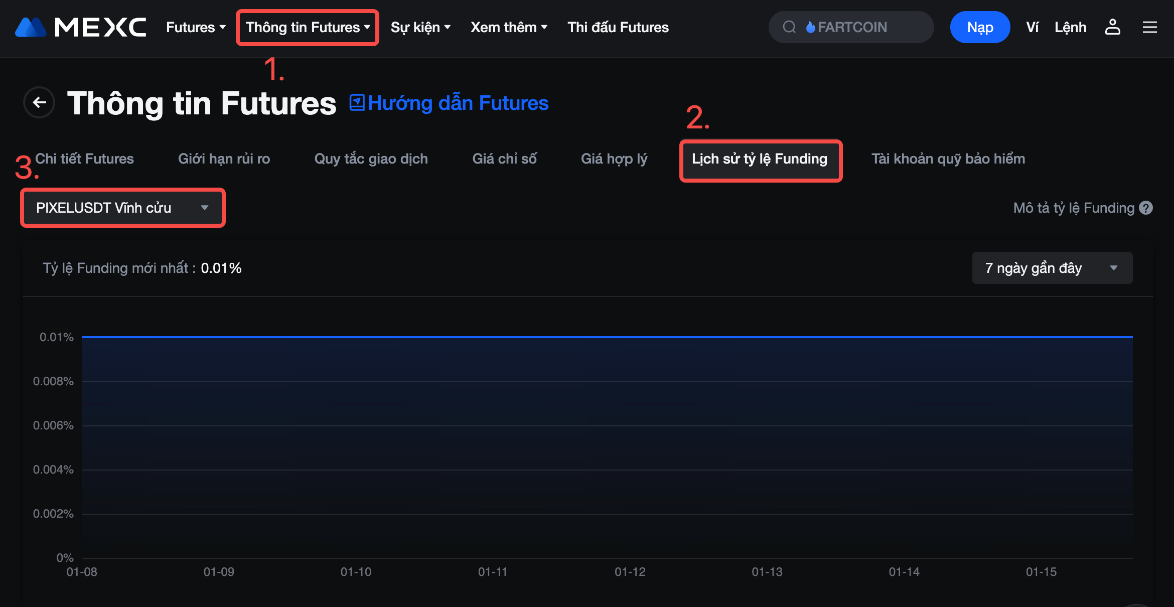 Để biết chi tiết tỷ lệ Funding mới nhất, vui lòng tham khảo Thông tin Futures - Lịch sử tỷ lệ Funding.