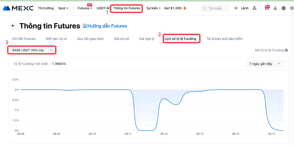 Để biết chi tiết tỷ lệ Funding mới nhất, vui lòng tham khảo Thông tin Futures - Lịch sử tỷ lệ Funding.
