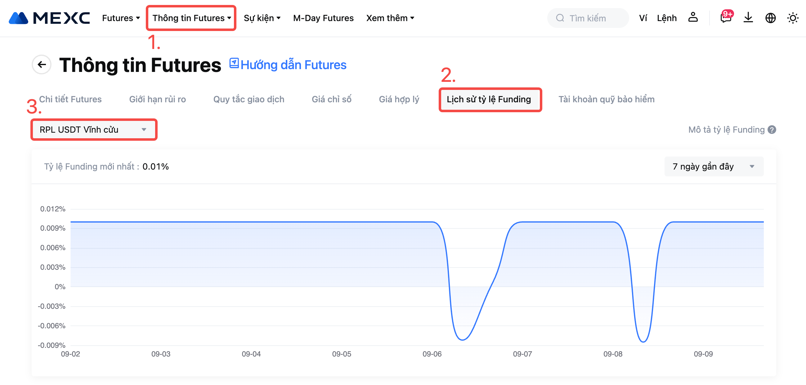 Để biết chi tiết tỷ lệ Funding mới nhất, vui lòng tham khảo Thông tin Futures - Lịch sử tỷ lệ Funding.