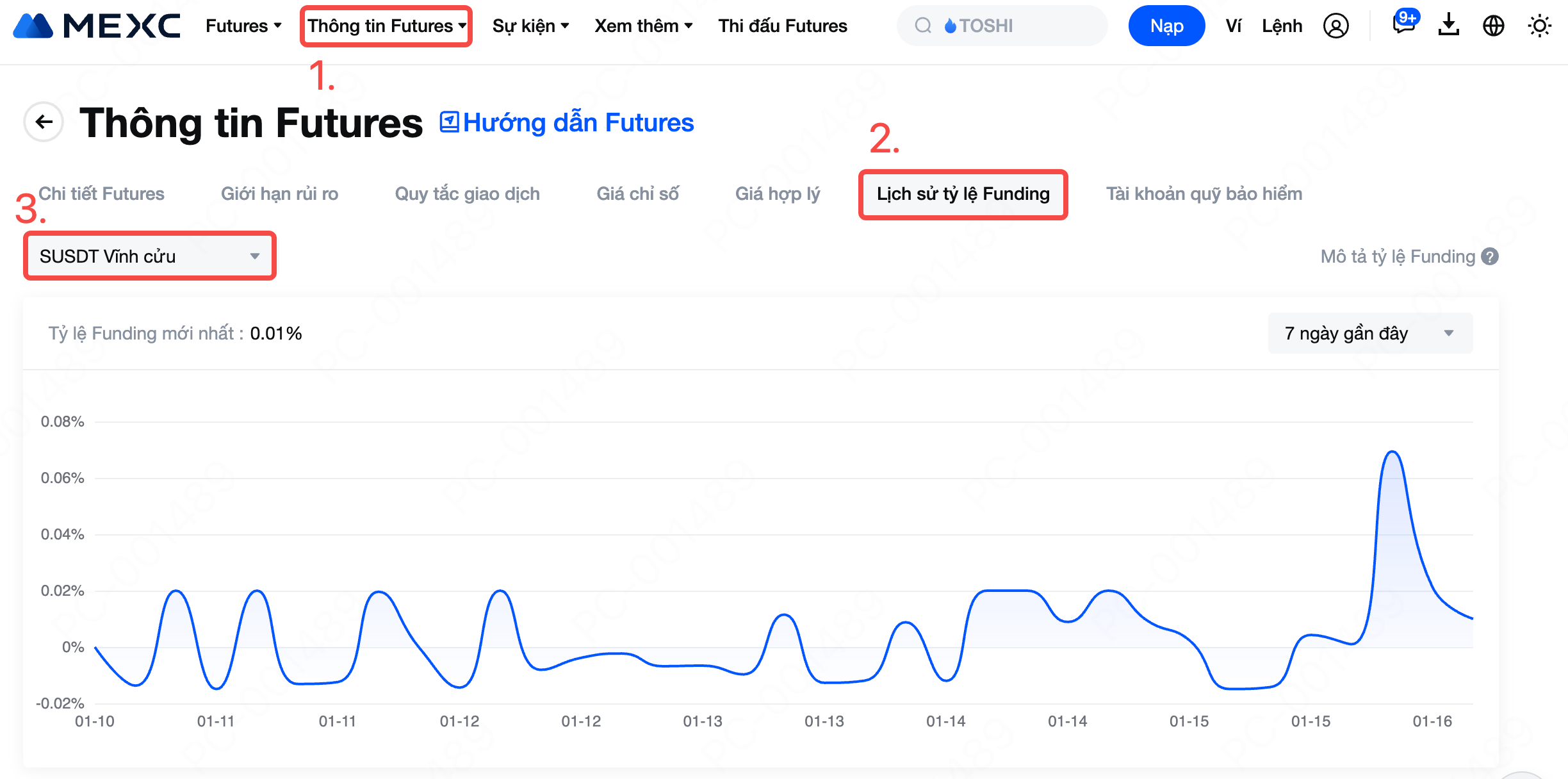 Để biết chi tiết tỷ lệ Funding mới nhất, vui lòng tham khảo Thông tin Futures - Lịch sử tỷ lệ Funding.