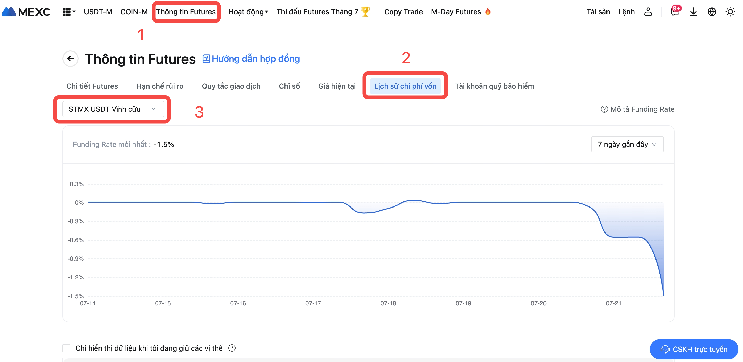 Để biết chi tiết funding rate mới nhất, vui lòng tham khảo Thông tin - Lịch sử Funding Rate.
