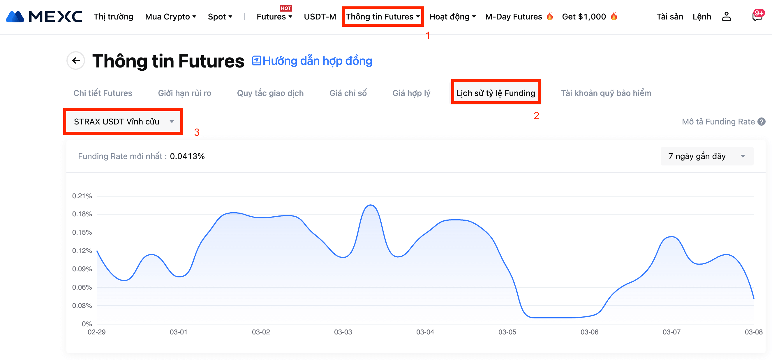 Để biết chi tiết tỷ lệ Funding mới nhất, vui lòng tham khảo Thông tin Futures - Lịch sử tỷ lệ Funding.