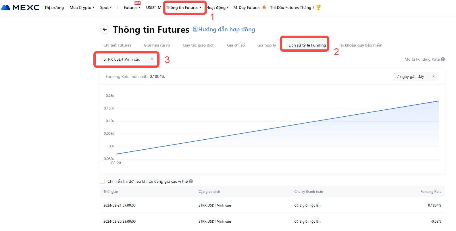 Để biết chi tiết tỷ lệ Funding mới nhất, vui lòng tham khảo Thông tin Futures - Lịch sử tỷ lệ Funding.