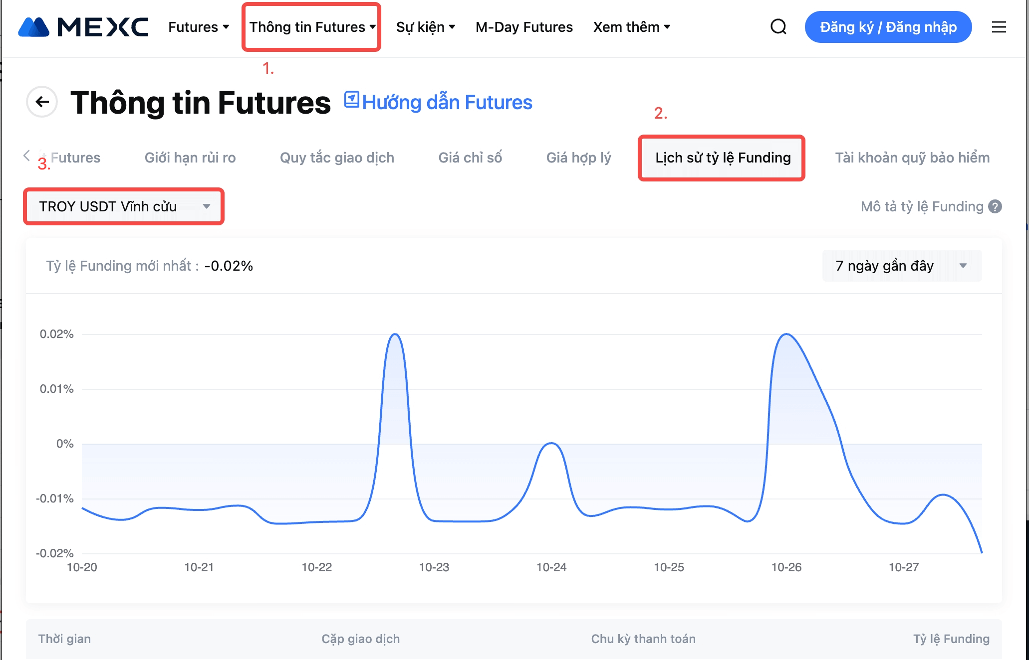 Để biết chi tiết tỷ lệ Funding mới nhất, vui lòng tham khảo Thông tin Futures - Lịch sử tỷ lệ Funding.
