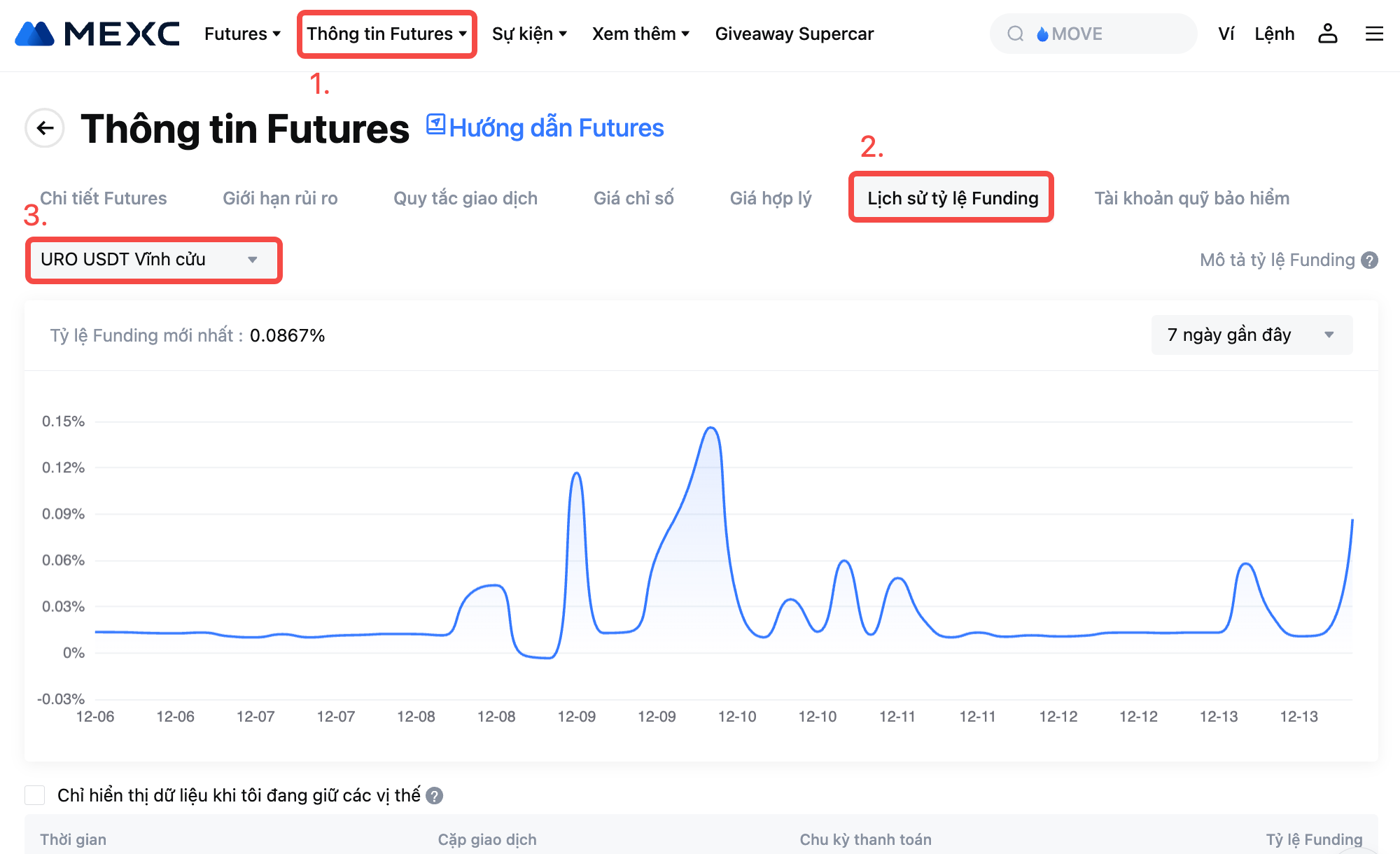 Để biết chi tiết tỷ lệ Funding mới nhất, vui lòng tham khảo Thông tin Futures - Lịch sử tỷ lệ Funding.