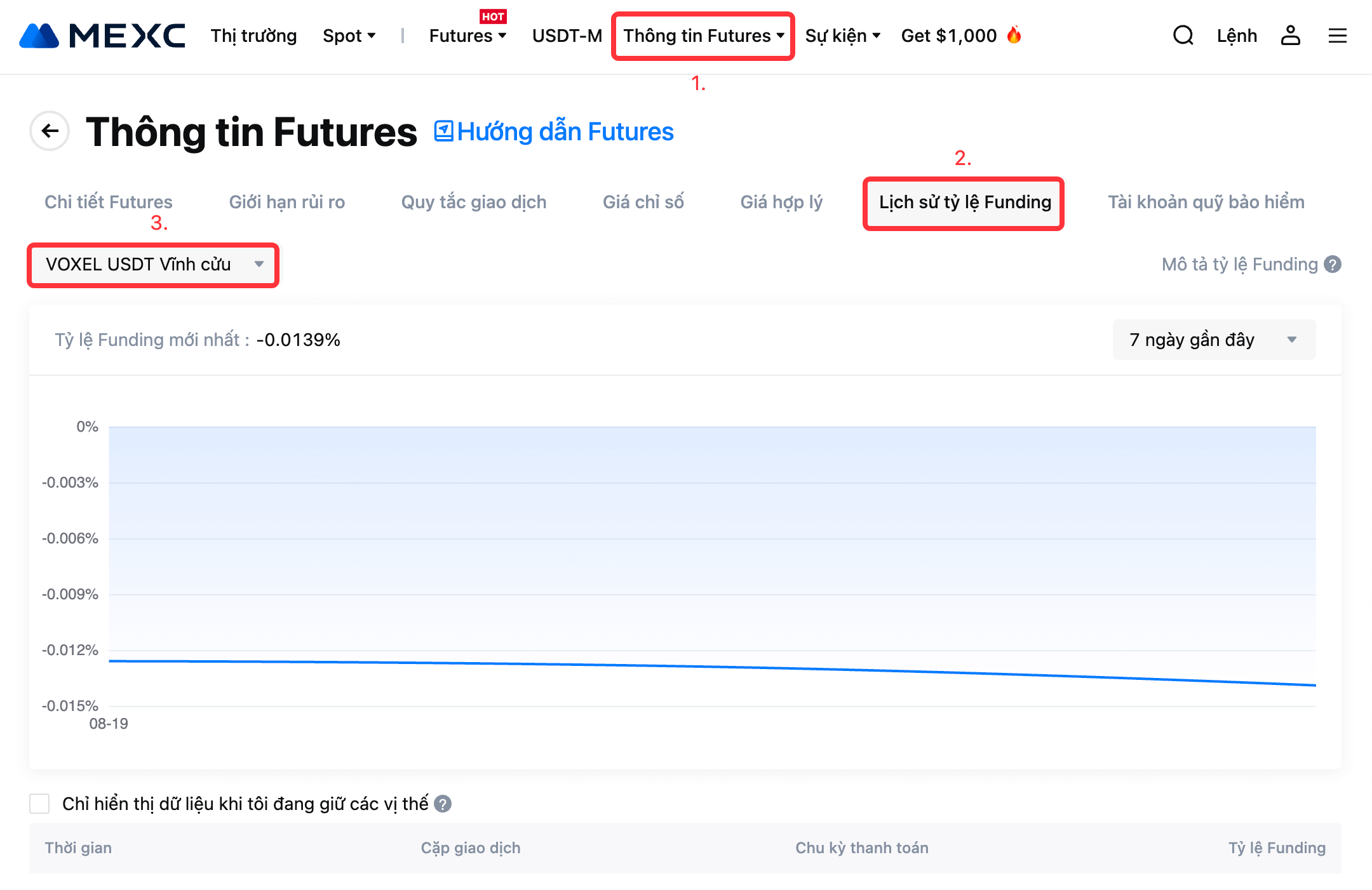 Để biết chi tiết tỷ lệ Funding mới nhất, vui lòng tham khảo Thông tin Futures - Lịch sử tỷ lệ Funding.