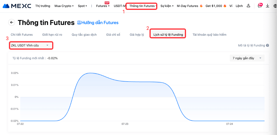 Để biết chi tiết tỷ lệ Funding mới nhất, vui lòng tham khảo Thông tin Futures - Lịch sử tỷ lệ Funding.