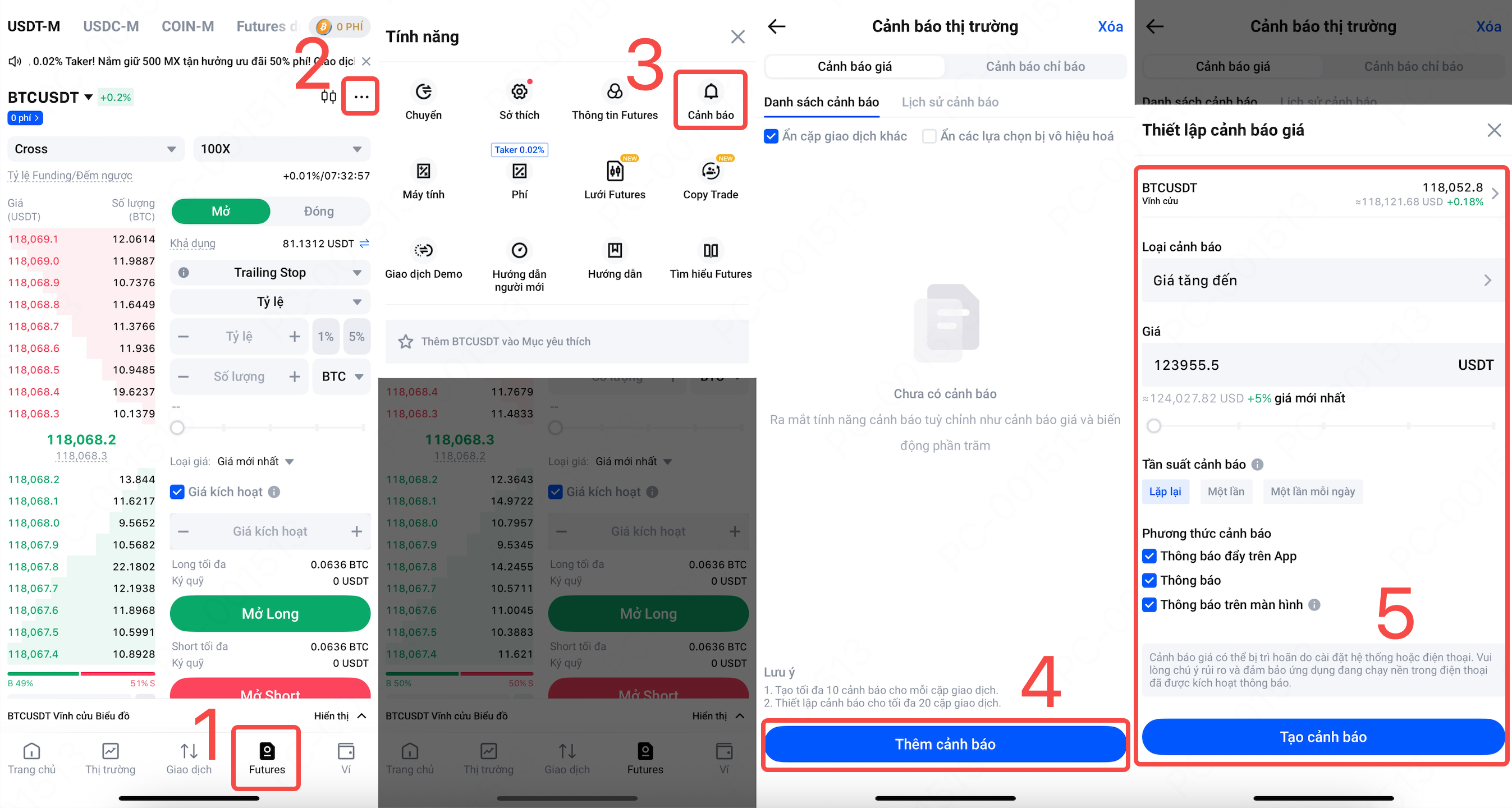 Hỗ trợ các cặp Futures chính với tuỳ chỉnh cảnh báo linh hoạt