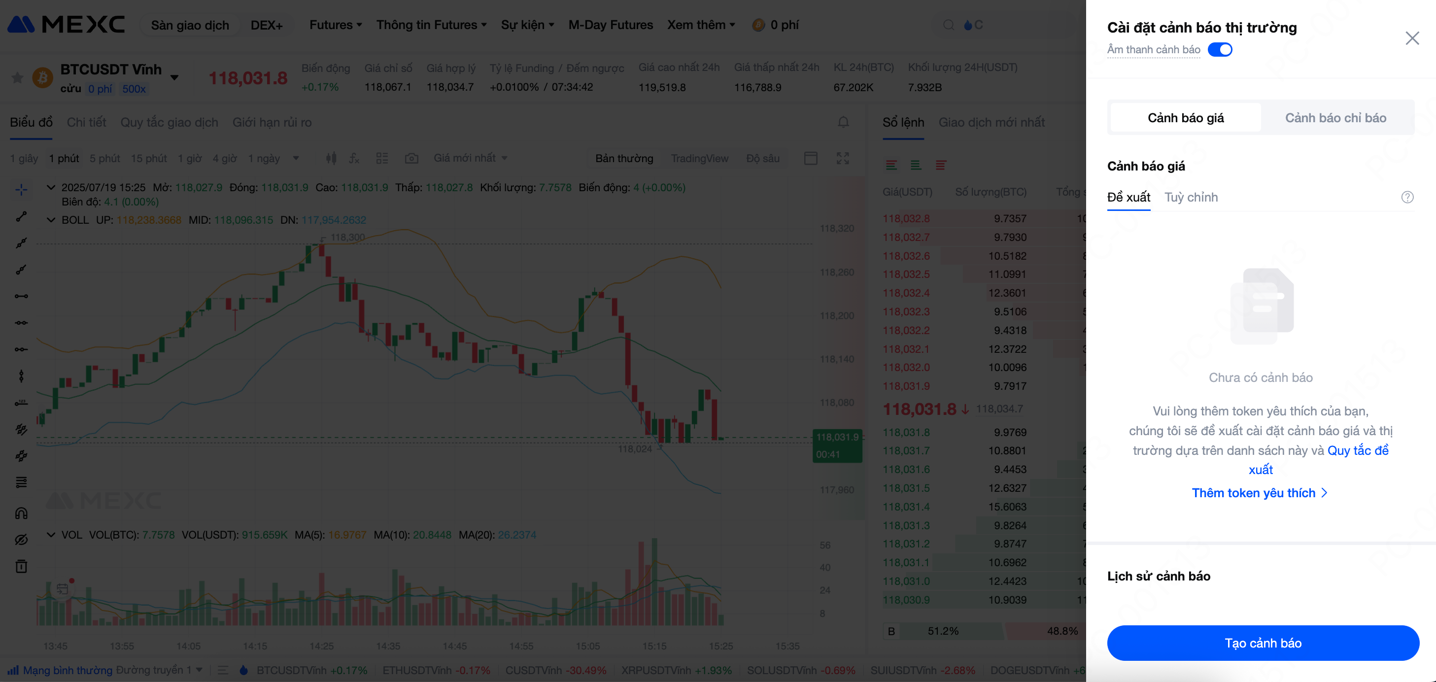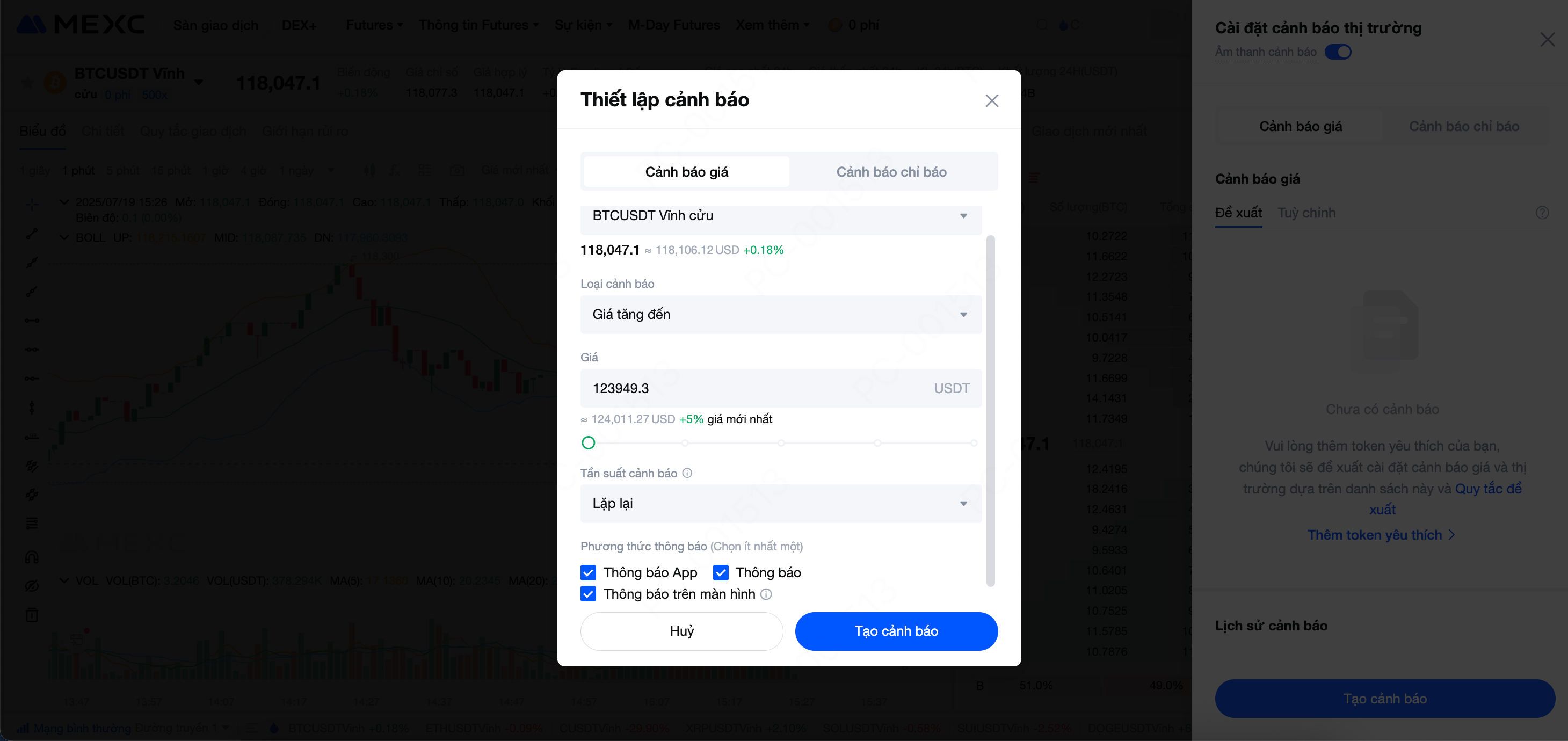 MEXC cung cấp hai loại cảnh báo cốt lõi để phù hợp với các chiến lược giao dịch khác nhau: