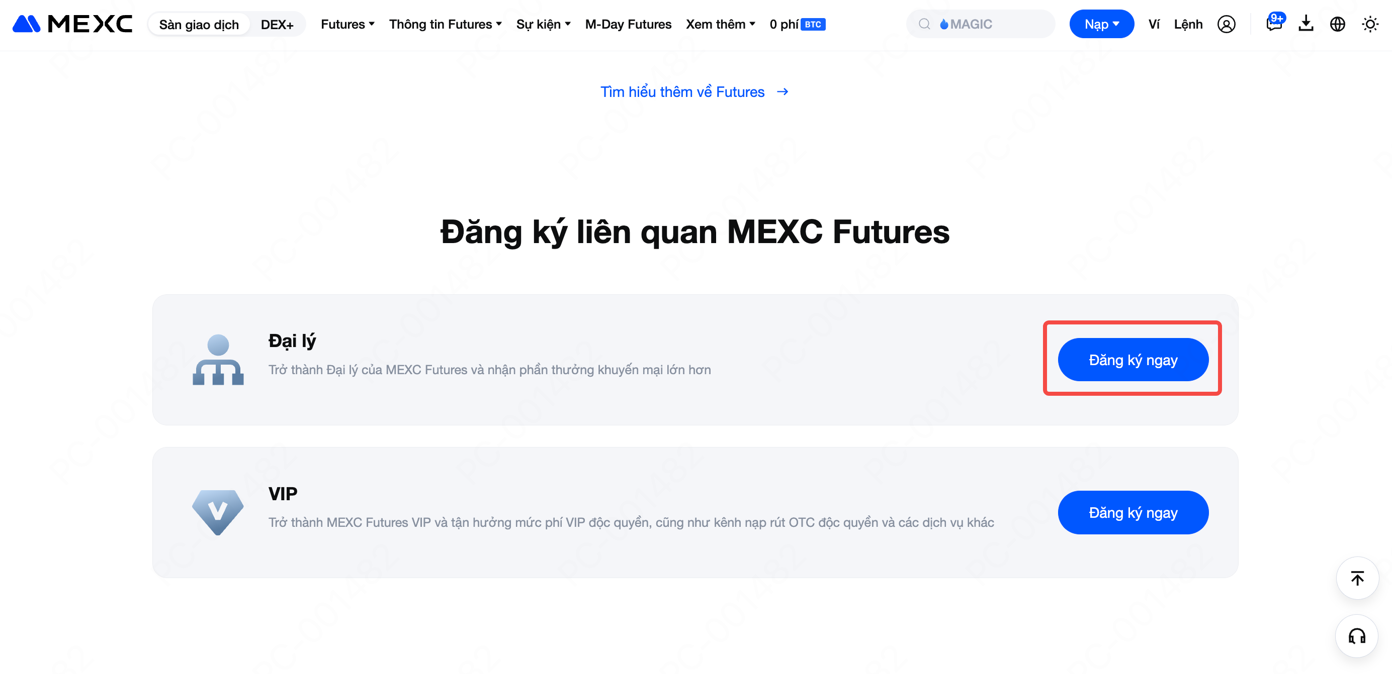 2) Cuộn xuống cuối trang và tìm phần Đại lý. Nhấn vào Đăng ký ngay.