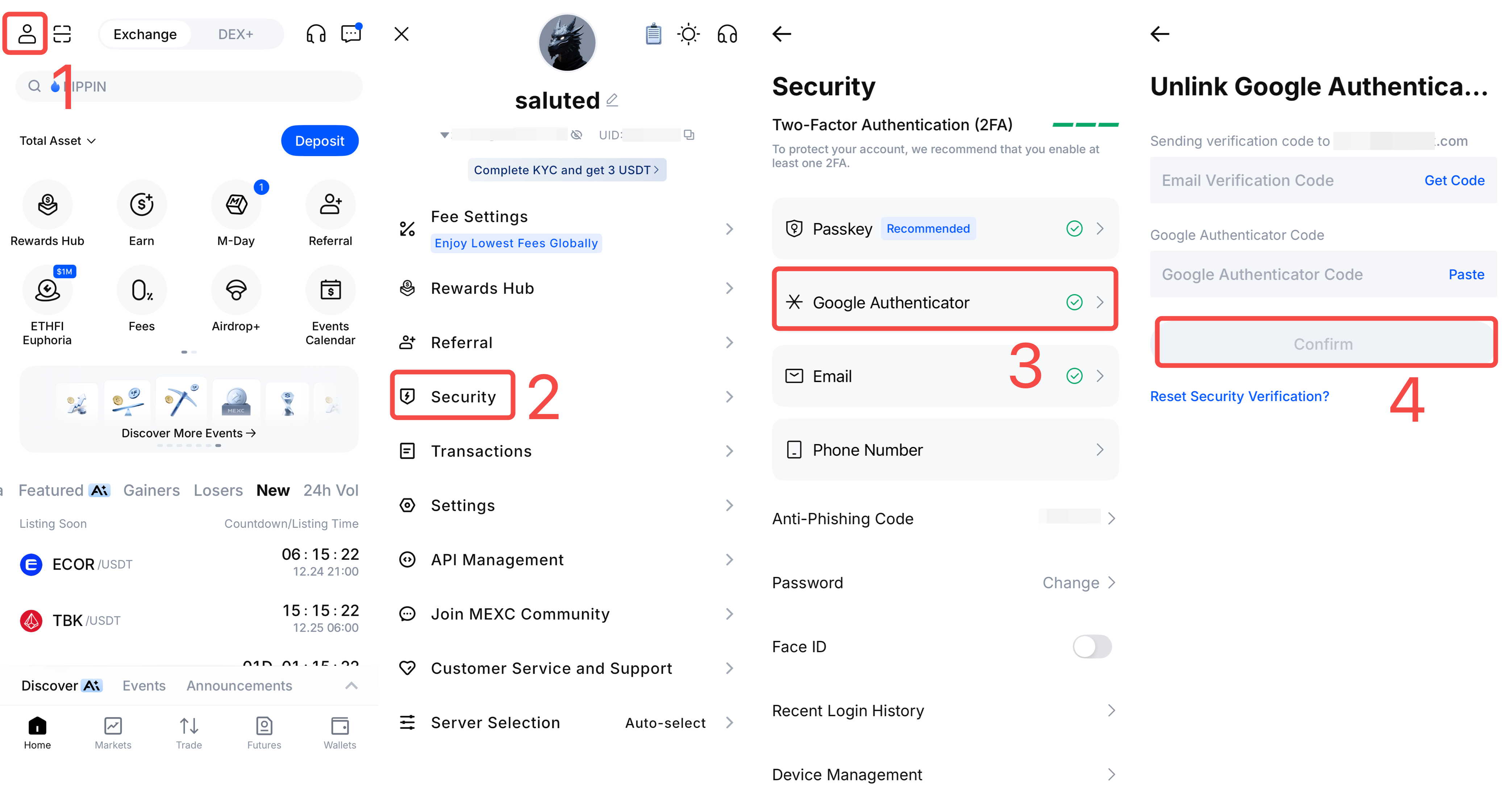 Hướng dẫn huỷ liên kết Google Authenticator trên MEXC
