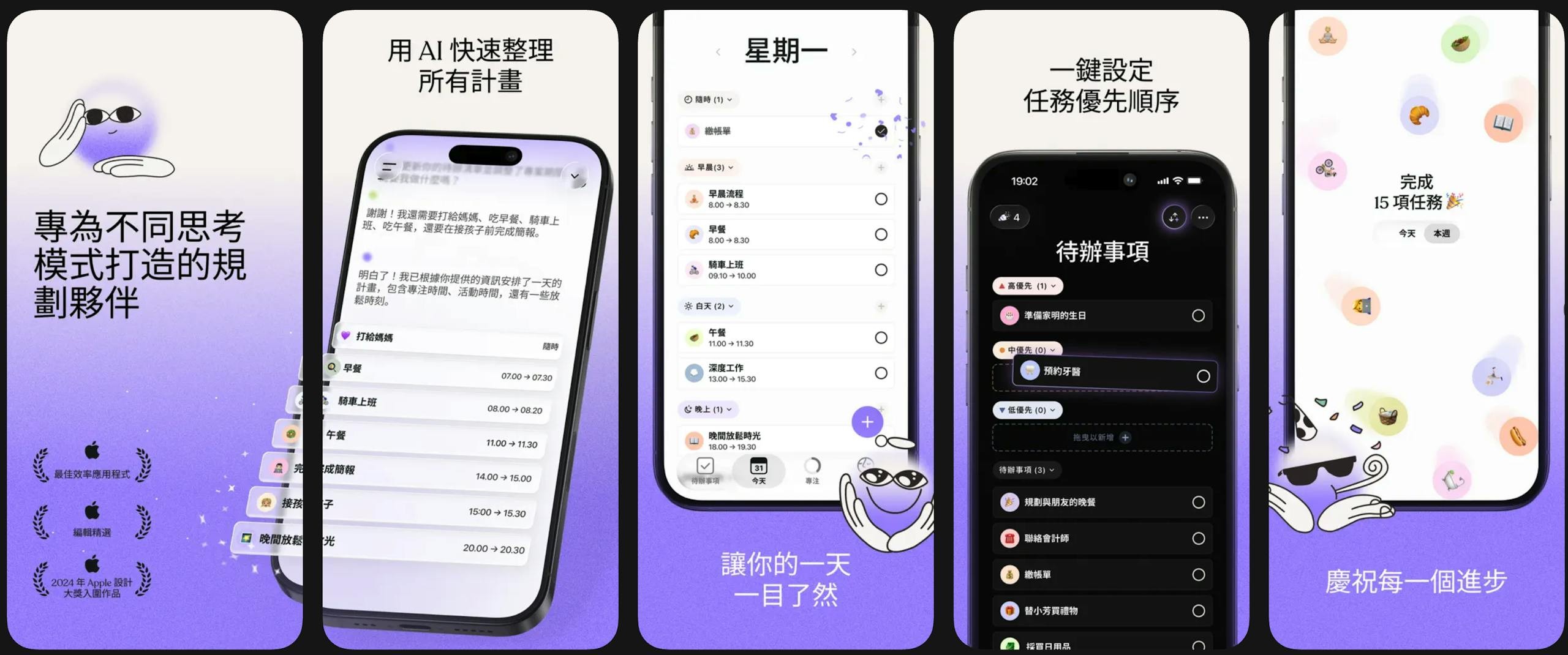 其中,年度 iPhone App 由《Tiimo》獲得。《Tiimo》為使用者提供出色的視覺化規劃工具,以及精心設計的 AI,將願望轉化為可付諸行動的下一步。其目標是簡化專注、規劃和生產力,讓「規劃」一事變得更有趣。