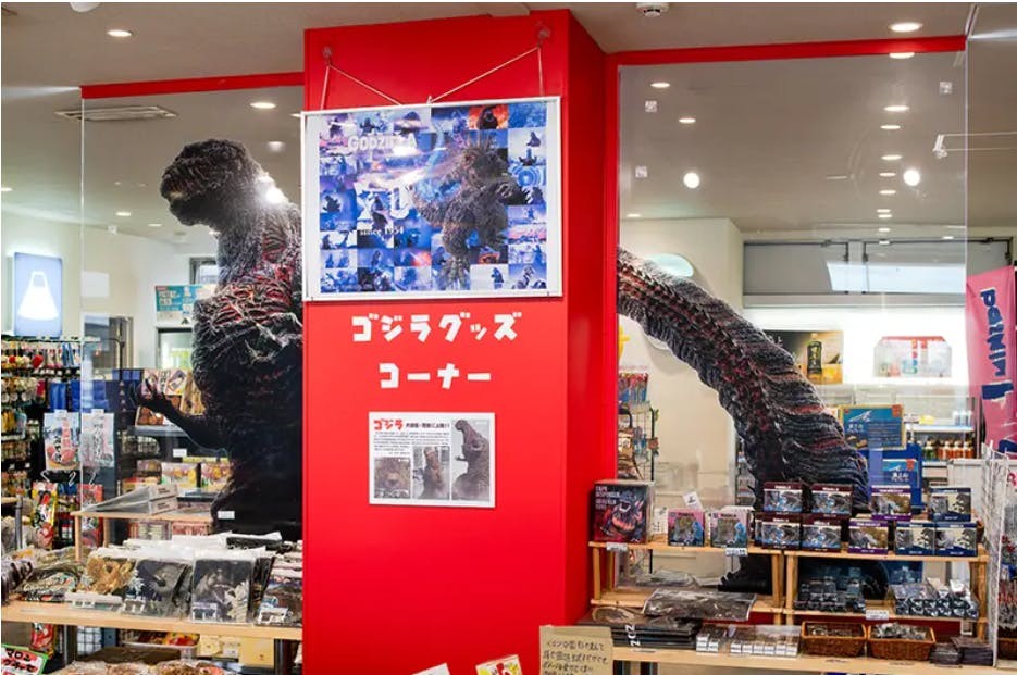 選在平和島休息站販售並非偶然。這個地點最靠近東京蒲田地區,正是電影中第二形態哥吉拉「蒲田君」登場並造成破壞的場景。這裡看更多。