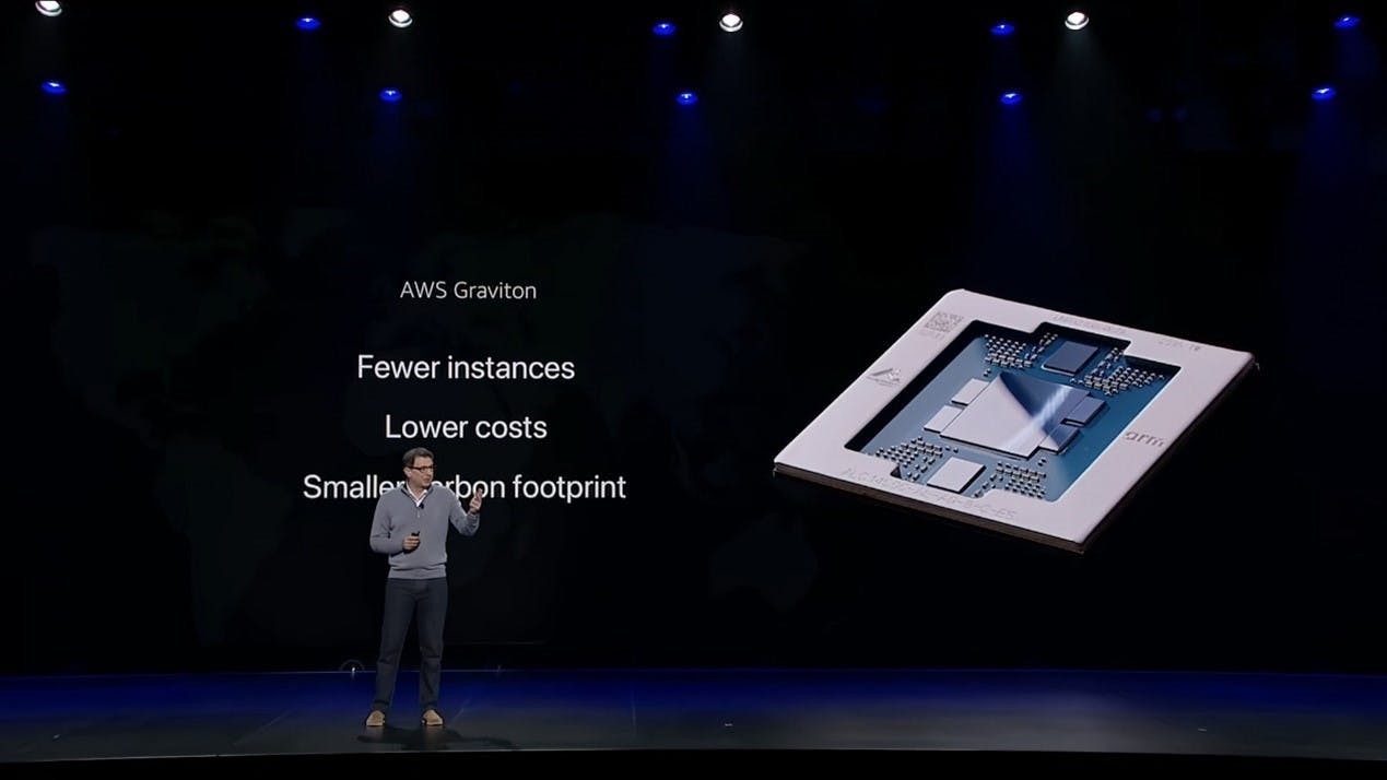 AWS 運算與機器學習服務副總裁 Dave Brown 上台,宣布推出 AWS Graviton5 處理器(預覽),實現了重大架構突破。這款處理器在單一封裝中提供 192 個核心,實現統一快速的記憶體存取,無需跨 CPU 互連。L3 快取容量是前一代的 5 倍以上。在散熱設計上,AWS Graviton5 移除了傳統的保護蓋和一層導熱材料,採用直接接觸晶片的冷卻方案,風扇功耗降低 33%。基於 AWS Graviton5 的 M9g 執行個體比 M8g 效能提升 25%,提供 Amazon EC2 中最佳性價比。