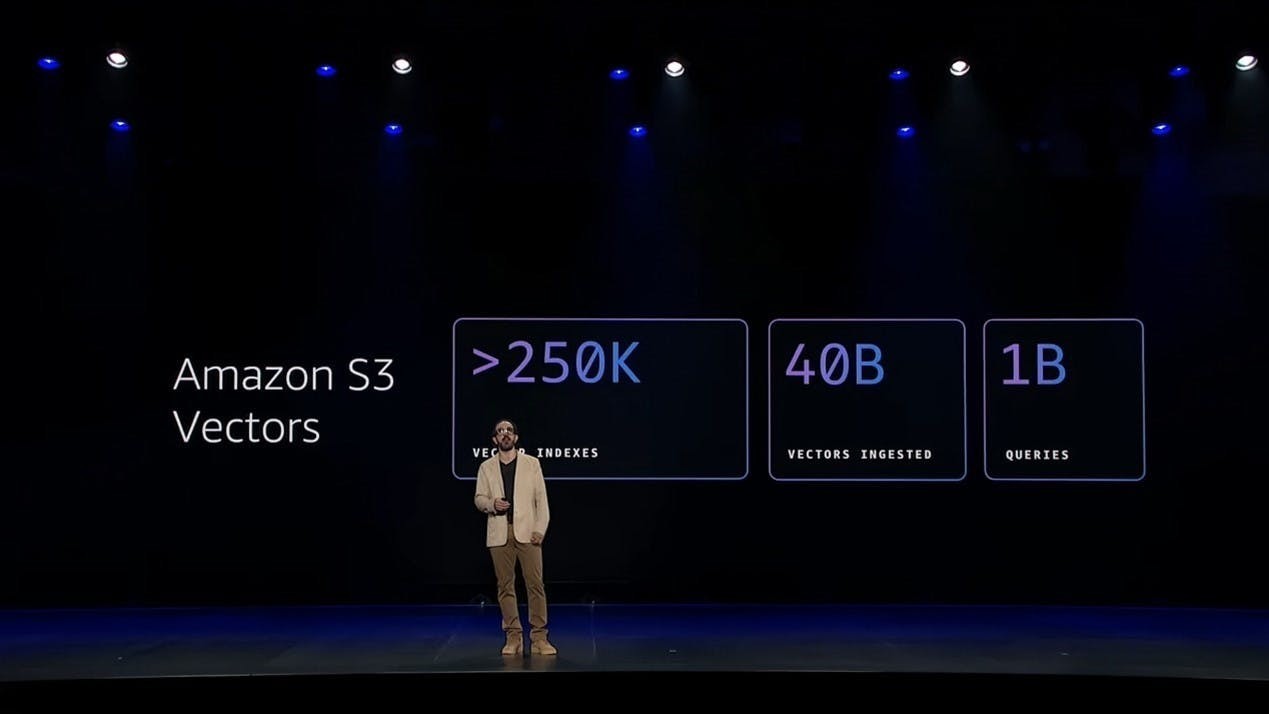 Amazon OpenSearch Service從精確比對搜索演進為向量驅動的智能引擎,其混合搜索能力兼具關鍵詞搜索的精確性與語義搜索的深度理解價值。Amazon S3 Vectors 將向量儲存能力整合至最大的資料服務 Amazon S3 中,Amazon S3 原生成本結構與海量規模為向量資料庫提供強力支援,可實現數十億級向量的亞 100 毫秒級查詢響應。同時,產業內其他資料庫和分析服務也在新增向量搜索能力。