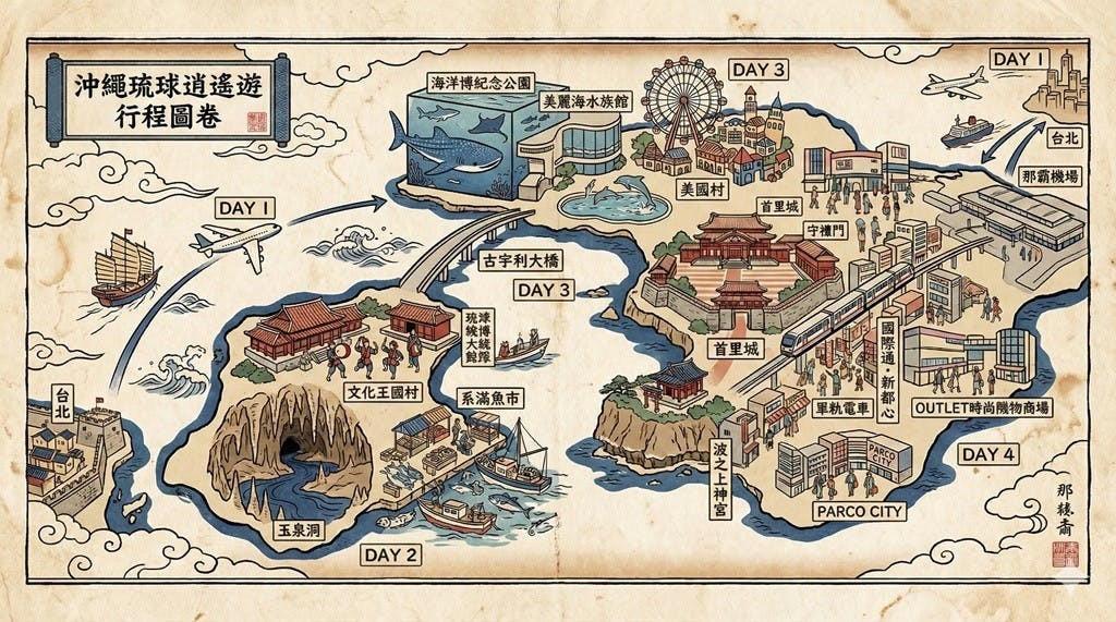 自行規劃旅遊行程後,想要有張精美的旅遊地圖和他人分享,這時候只要把行程交給AI一下就搞定,利用Gemini的Nano Banana Pro相當方便,行程景點順序全都繪製在1張圖片裡。而在單純整理資訊以外,如果有精準的提示詞就能夠讓Nano Banana Pro繪製出不同風格的旅遊地圖,別再只用手帳文青風了,這裡整理9種自行規劃旅遊行程後,想要有張精美的旅遊地圖和他人分享,這時候只要把行程交給AI一下就搞定,利用Gemini的Nano Banana Pro相當方便,行程景點順序全都繪製在1張圖片裡。而在單純整理資訊以外,如果有精準的提示詞就能夠讓Nano Banana Pro繪製出不同風格的旅遊地圖,別再只用手帳文青風了,這裡整理9種