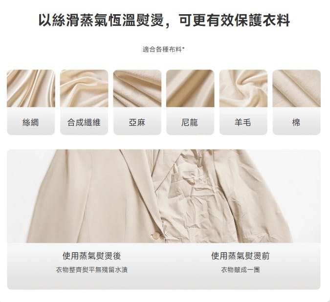 至於在適用的布料方面,官方表示絲綢、合成纖維、亞麻、尼龍、羊毛、棉質布料都能使用。操作時只要開機並等待26秒就能快速加熱完畢,讓你出門前快速處理一下衣物。小米這款掛燙機利用加壓技術,產生大量綿密的蒸汽燙平衣物的同時,減少水分在衣物的殘留量,讓你不用等候風乾就能立刻穿出門。