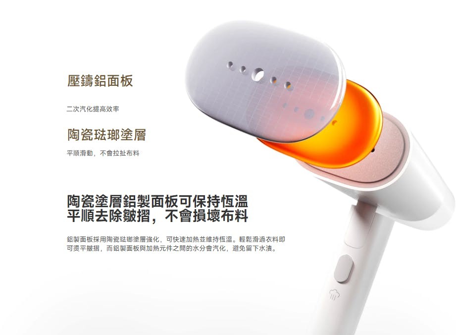 掛燙機除了加熱元件外,接觸面的設計也很重要。小米這款產品接觸面為鋁質面板加上陶瓷塗層,有助於保持恆溫且可平順去除衣物皺褶,減少對布料的傷害。內建160ml大容量透明水箱,讓你隨時確認水量並且滿水可燙6件衣物相當實用。