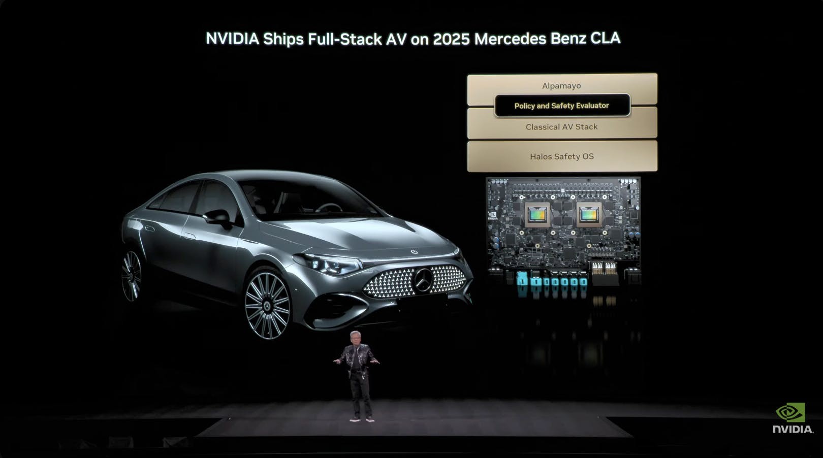 除了 Alpamayo 之外,黃仁勳也宣布 Mercedes-Benz 的 2025 CLA 將會導入 NVIDIA DRIVE AV,搭載增強型 Level 2 點對點駕駛輔助功能,預計於今年底正式駛上美國道路。